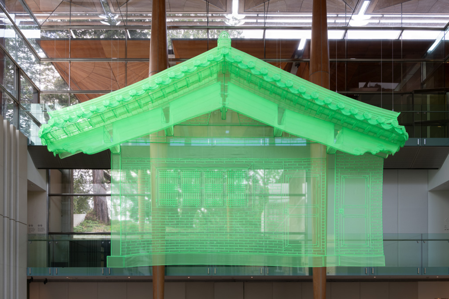 Marvel at the eight-metre large fabric sculpture that appears suspended in space, hanging from the ceiling in the heart of the Gallery’s building. Identified as one of Suh’s most significant early pieces, North Wall is a vibrant green fabric sculpture, inspired by the artist’s father’s studio in Seoul and modelled after a traditional Korean scholar house. The piece — rendered using fabric techniques that have become synonymous with Suh’s practice — explores themes of longing, memory and cultural displacement.