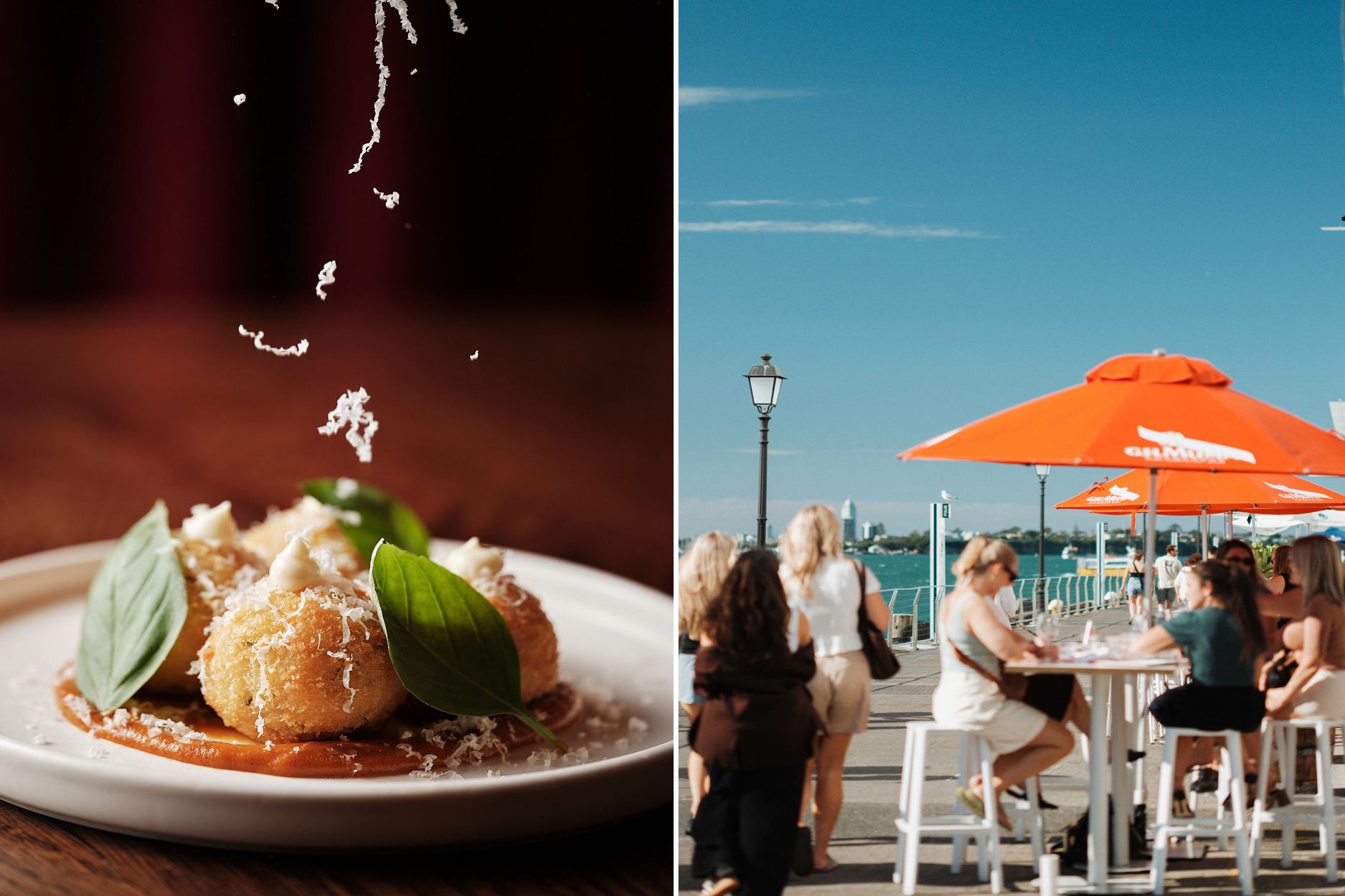 Among the standouts are sweetcorn and basil arancini with tomato fondue, crisp on the outside and generously molten within, and a summery buffalo mozzarella paired with heirloom tomato, melon and mint. A kingfish tartare with mango, jalapeño, avocado and lime arrives vibrant and fresh, scooped up with a corn cracker, while grilled market fish is served with sweetcorn, tomato, basil, caperberry and chilli, tasting exactly as a waterfront lunch should.