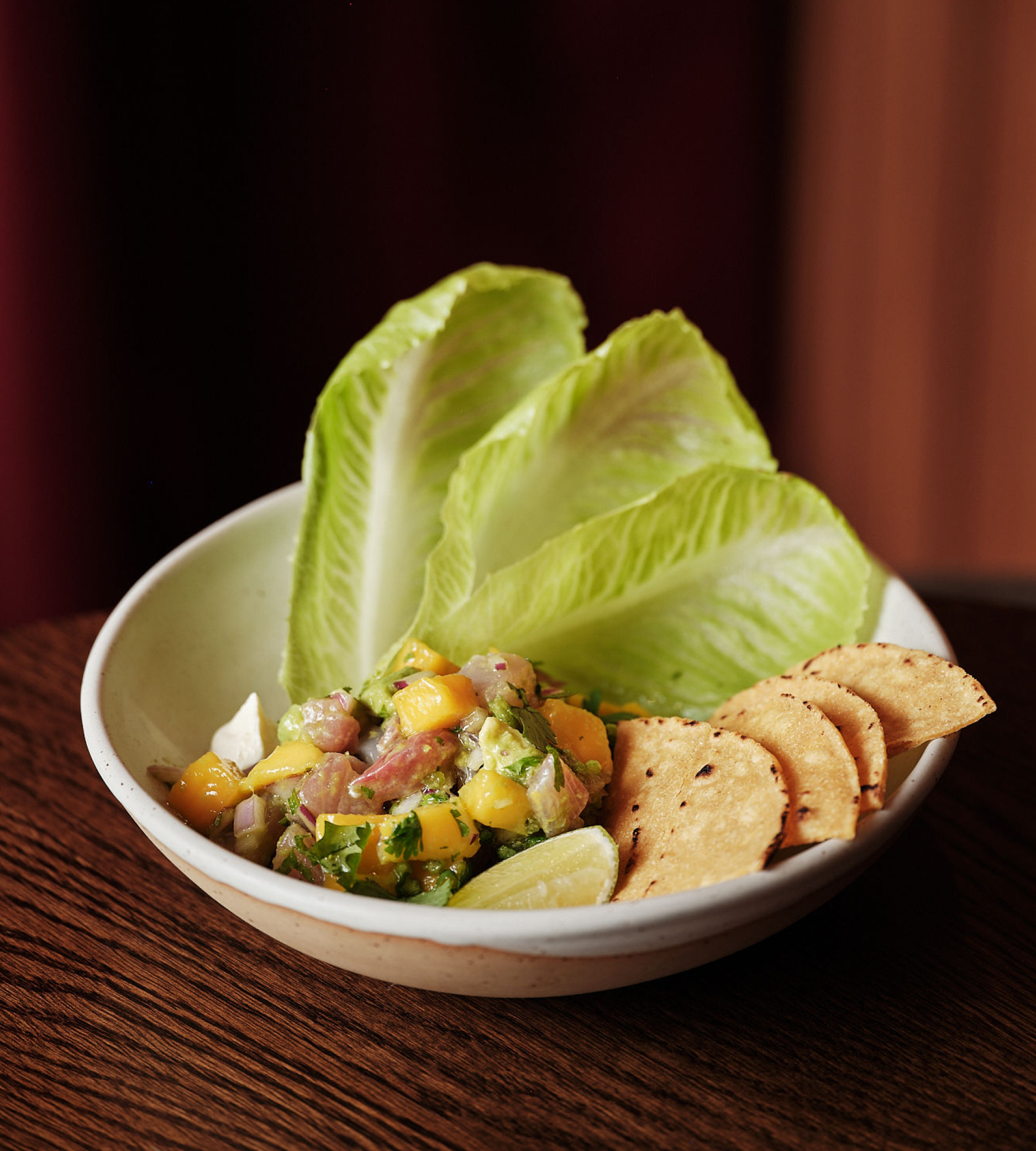 Kingfish tartare with mango, jalapeño, avocado, lime and corn crackers