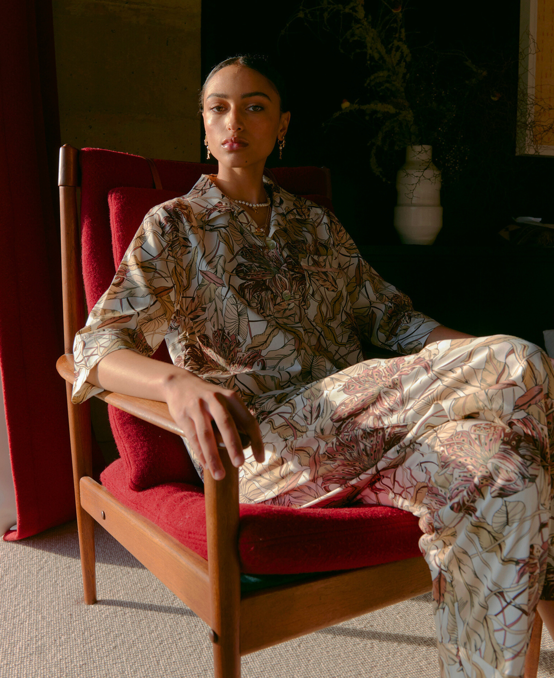 Going beyond aesthetics alone, the collection was conceived to conjure a serene sense of relaxation, and a momentary escape from the bustle of life. “Pyjamas should work for sleeping, lounging or spending a whole day in them,” says designer Karen Walker. “Papinelle’s fabrics are key, from cottons to machine-washable silk, and our prints bring them to life, making every piece practical, beautiful and chic enough to live in all day.”
