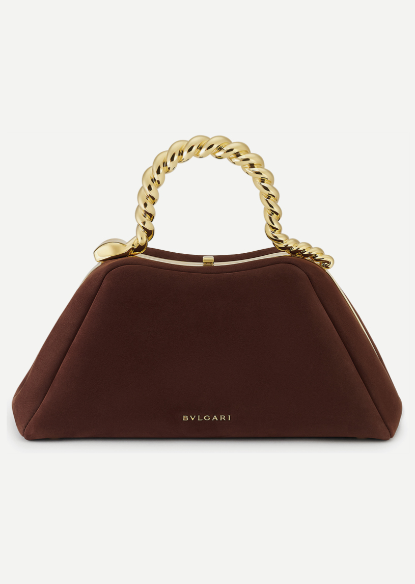 Renowned for her sculptural, art-driven aesthetic, Guyot brings a refined playfulness to the piece, weaving intricate metal passementerie through its serpentine curves. The result is a masterful dialogue between Bvlgari’s storied jewellery heritage and Parisian modernism. A celebration of sensual form, bold craftsmanship and timeless creative evolution.
