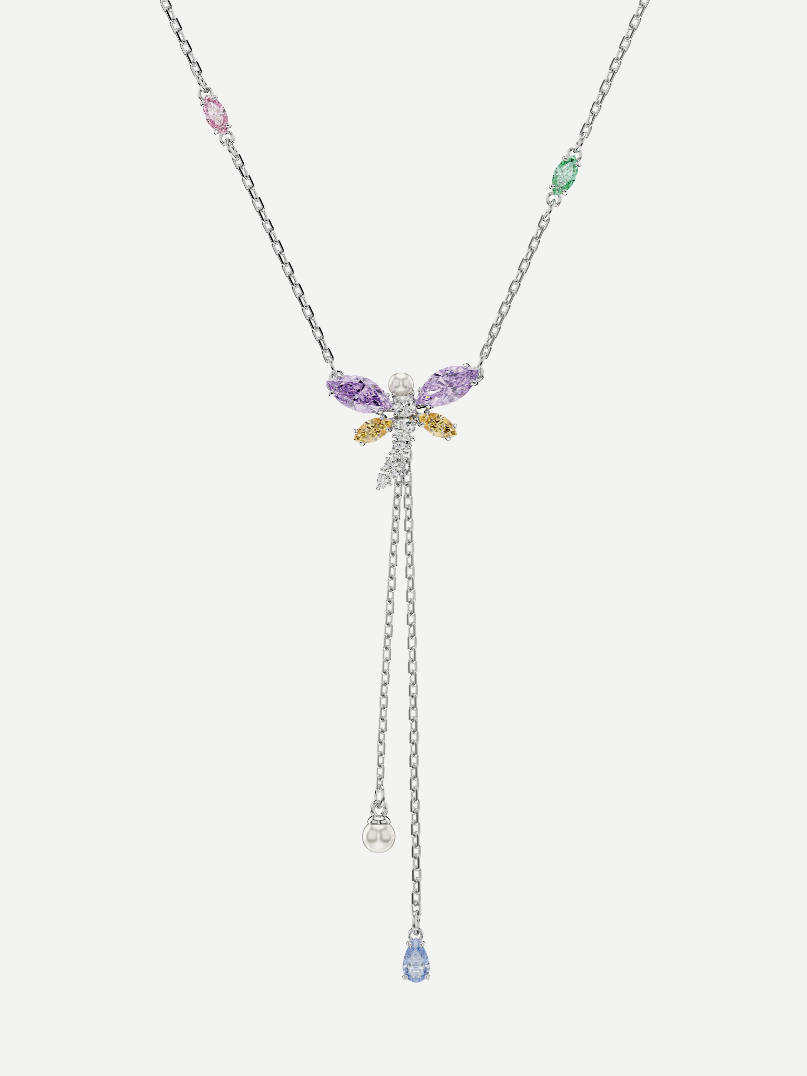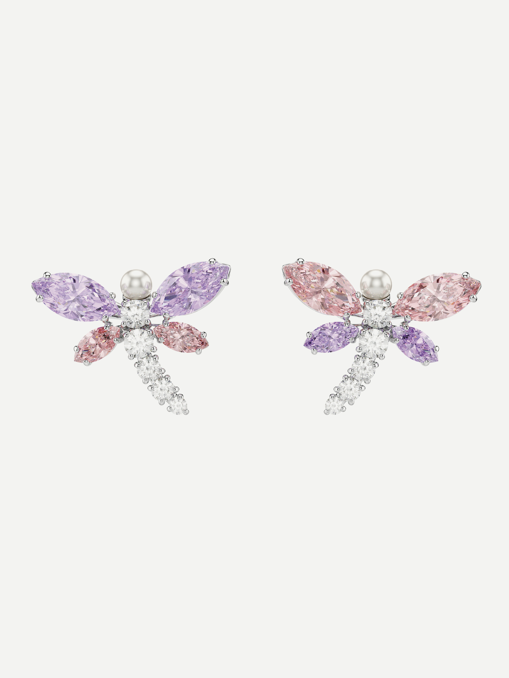 If the duo’s debut collaboration leaned toward polished classicism, this chapter feels altogether more playful. The collection draws inspiration from the magic of the natural world, translating delicate forms into jewellery through Swarovski’s signature crystal craftsmanship. Dragonflies shimmer across earrings and pendants in both literal and abstract interpretations, their wings rendered in prismatic stones that catch the light with every movement.