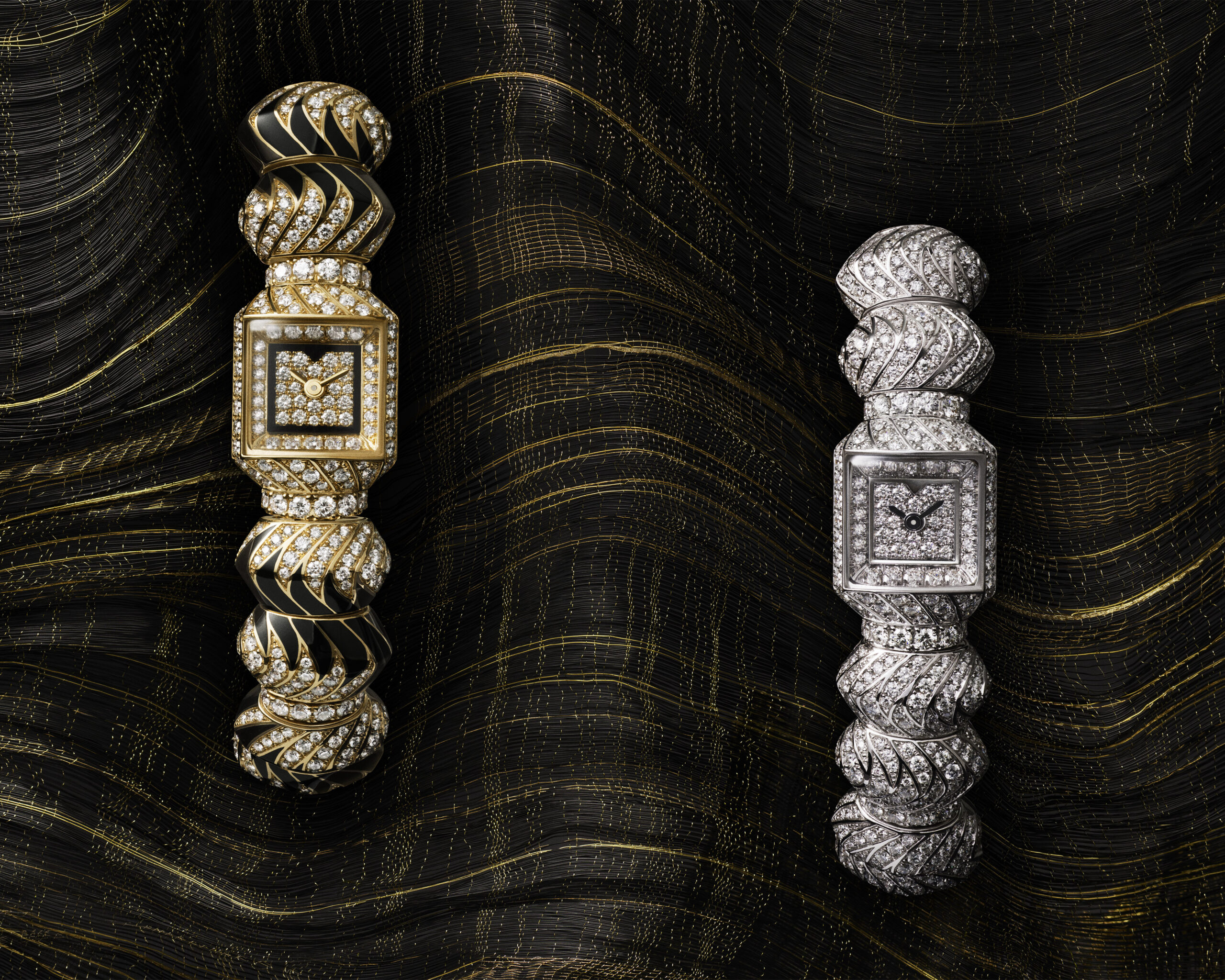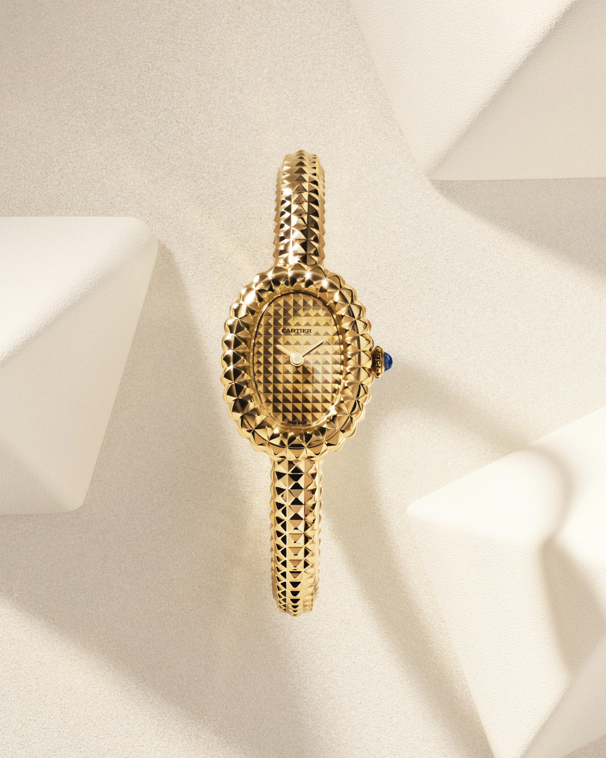 For moments when time should not really matter. The Myst de Cartier does not fasten. It slides over the wrist, structured as a flexible bracelet of alternating talisman modules with a square case sitting quietly at the centre. On the yellow gold version, 634 brilliant-cut diamonds are paired with hand-painted black lacquer, applied individually at the Maison des Métiers d’Art in Switzerland, and 30 hours of gem-setting produce a depth that has to be seen to be understood. The white gold version features the same architecture, set with 986 diamonds. Everyone deserves a piece of jewellery that also happens to tell the time, and this is Cartier’s most elegant argument for it.