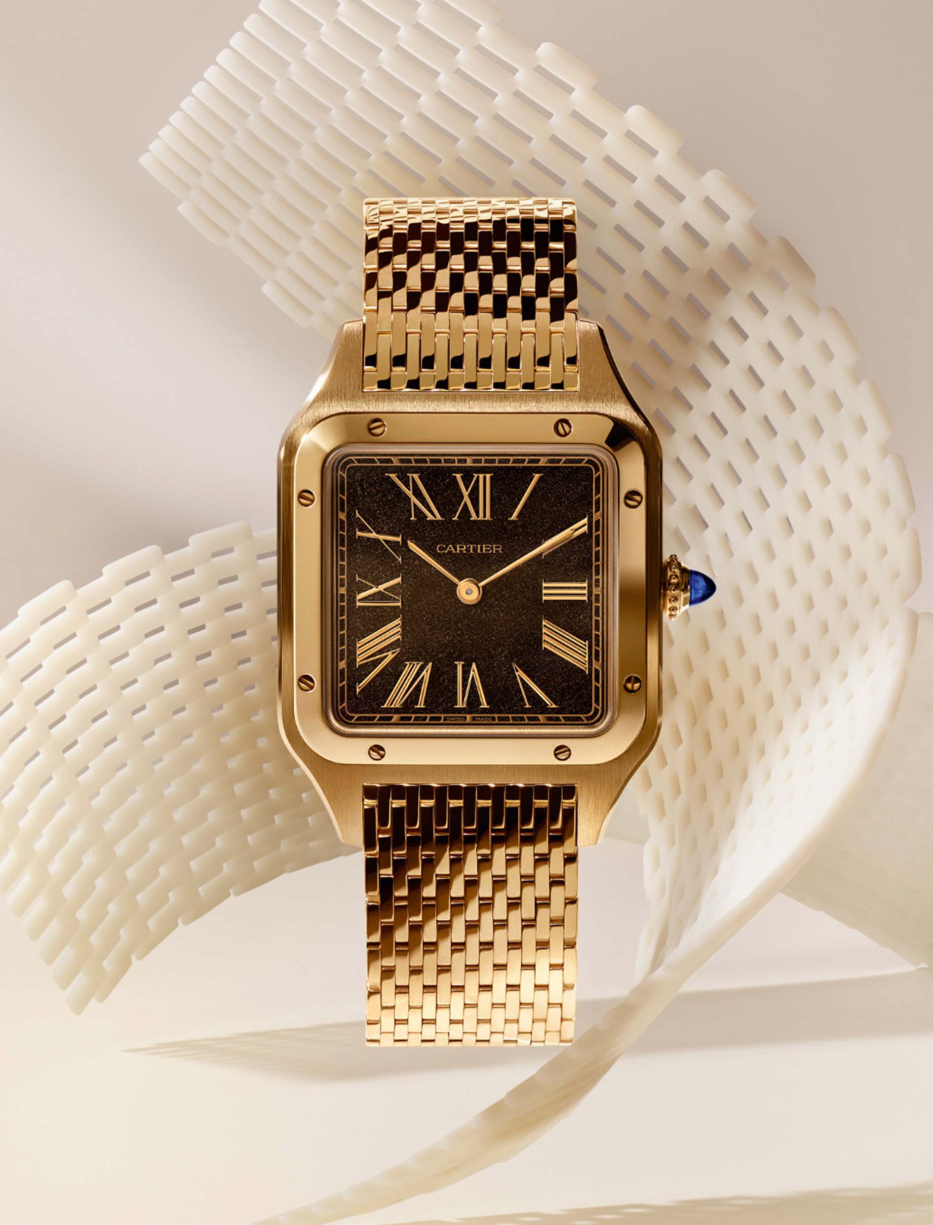 The dial is the reason to stop. Polished obsidian from Mexico, sliced to 0.3mm, trapping tiny air bubbles as it forms, each one giving the surface a unique iridescent quality that shifts through different shades depending on the light falling across it. No two dials are identical, which feels appropriate for a watch this considered. The fine-mesh bracelet, with 394 individual links referencing Cartier’s flexible gold bracelets of the 1920s, adds an elegance that carries the whole piece. One of those releases that photographs well but rewards the in-person encounter more.