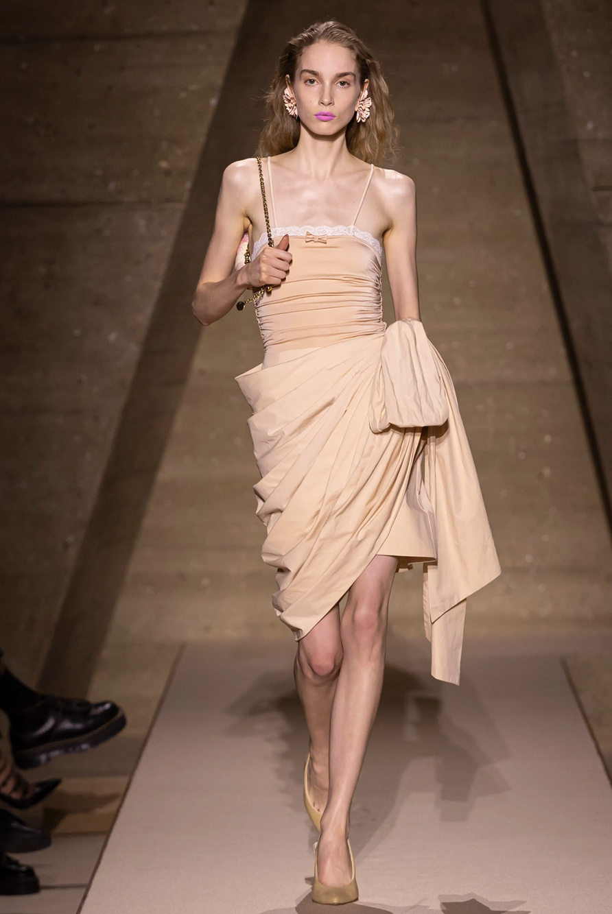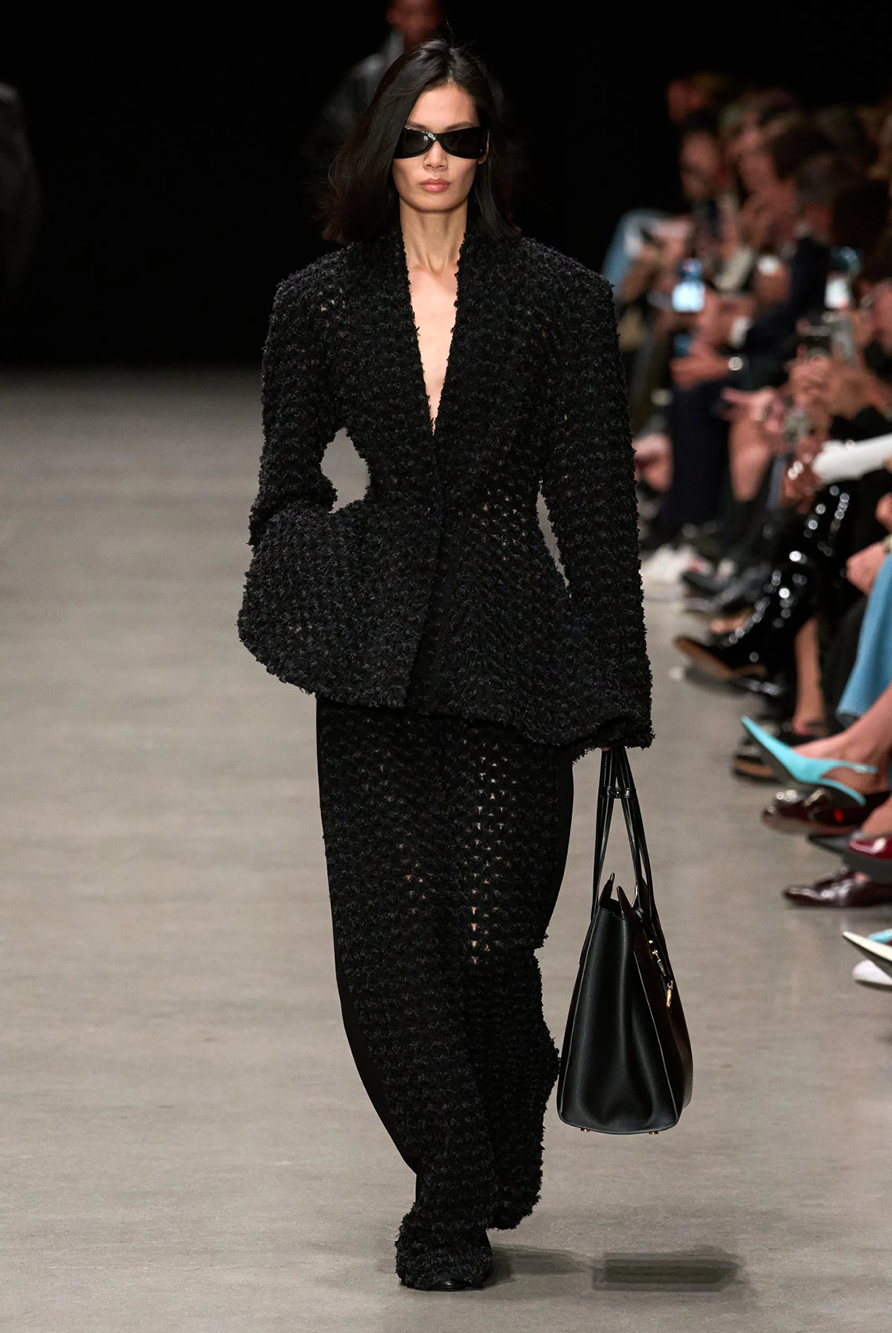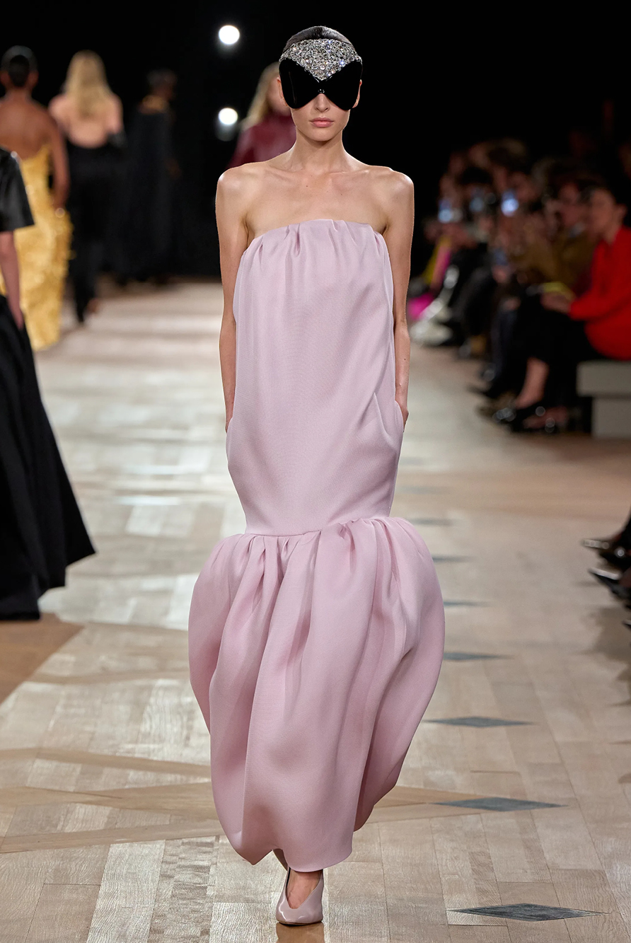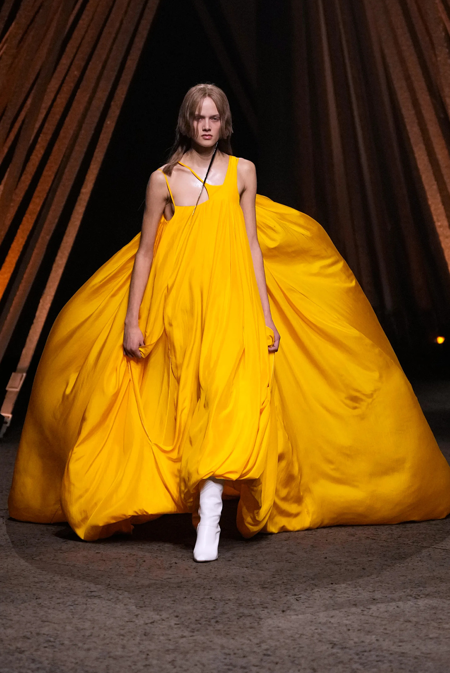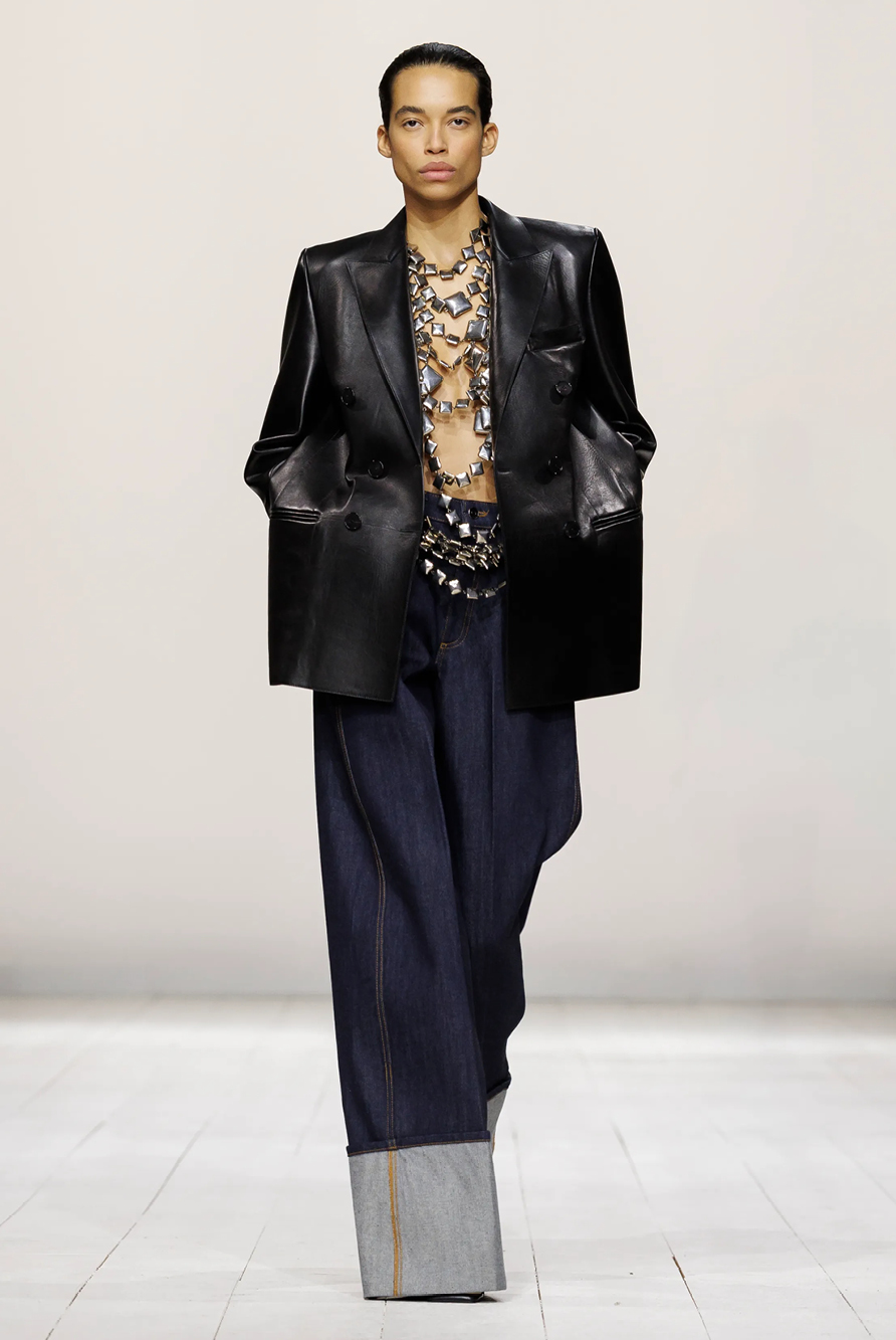 Givenchy and Schiaparelli embraced the barely there trend and leant all the way into the naked dress while others — think Miu Miu and Chemena Kamali’s Chloé — harped back to their respective brand DNA with the sixties’ shift and romantic ruching. The ateliers at Victoria Beckham, Celiné and Chanel approached menswear and casual suiting with the kind of ease of confidence that we’ve come to expect from all three, while Valentino and ALAÏA took a rose-tinted lens, cladding models in sequins, delicate lace appliqué and full plumage.