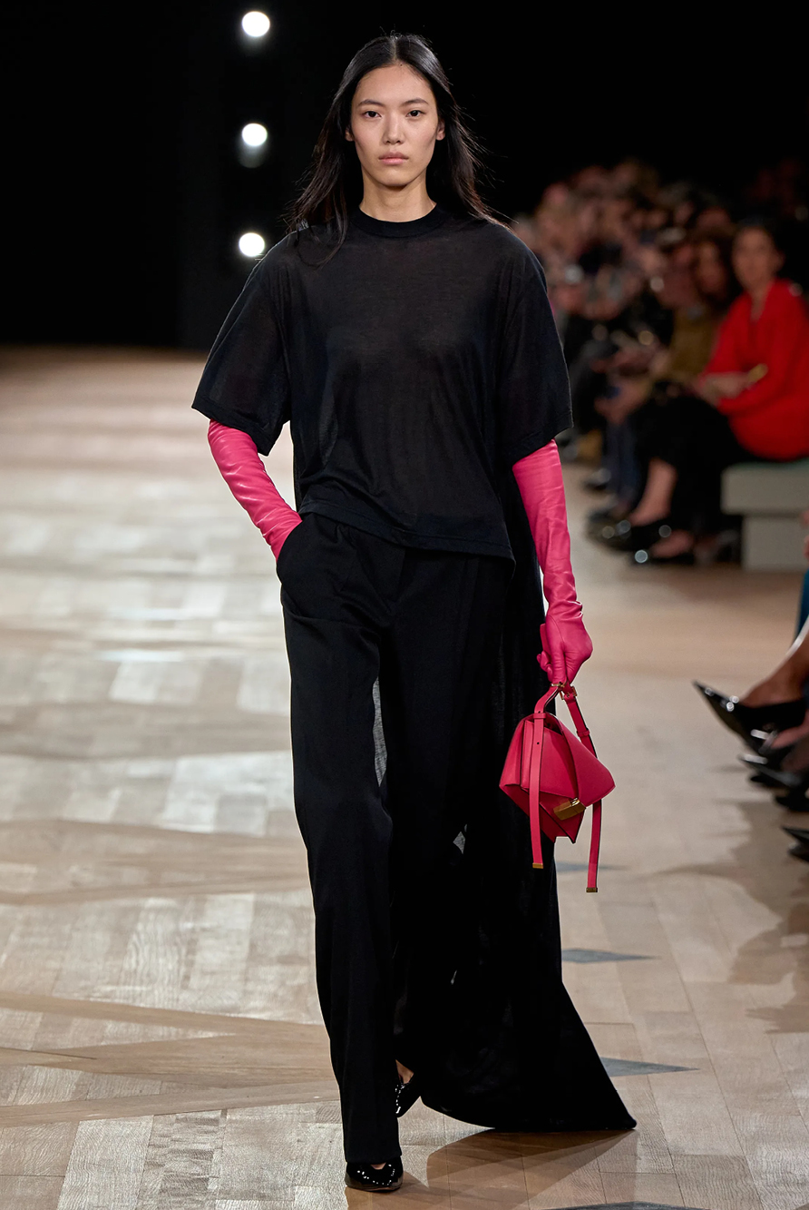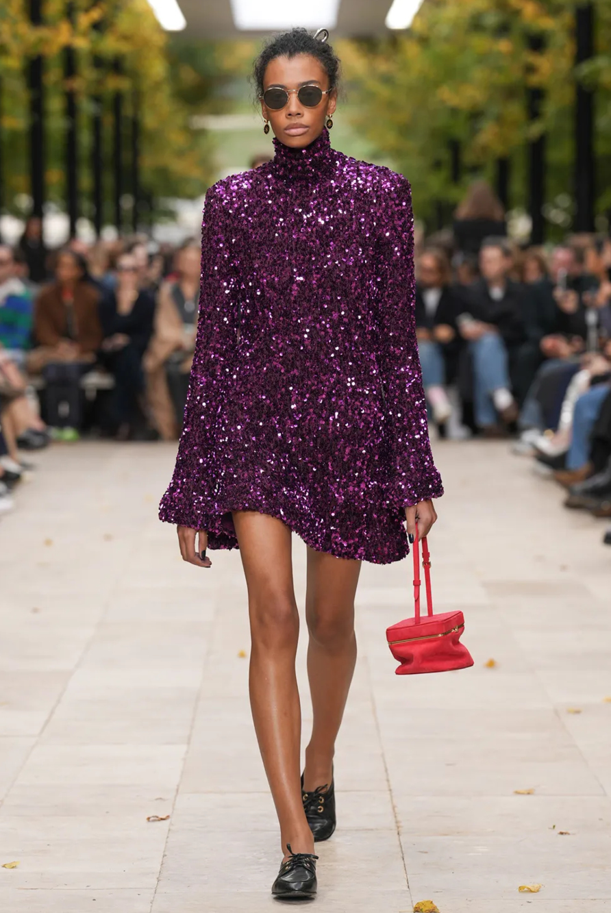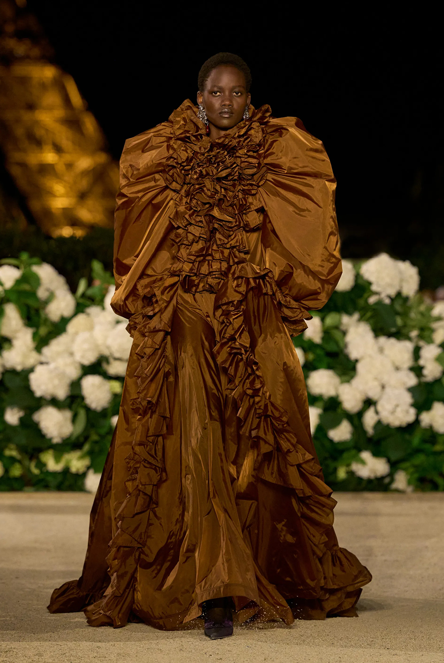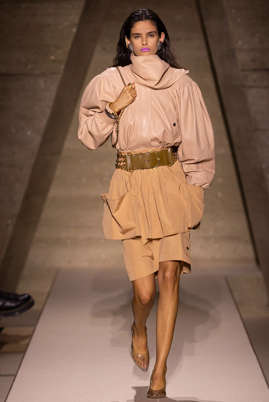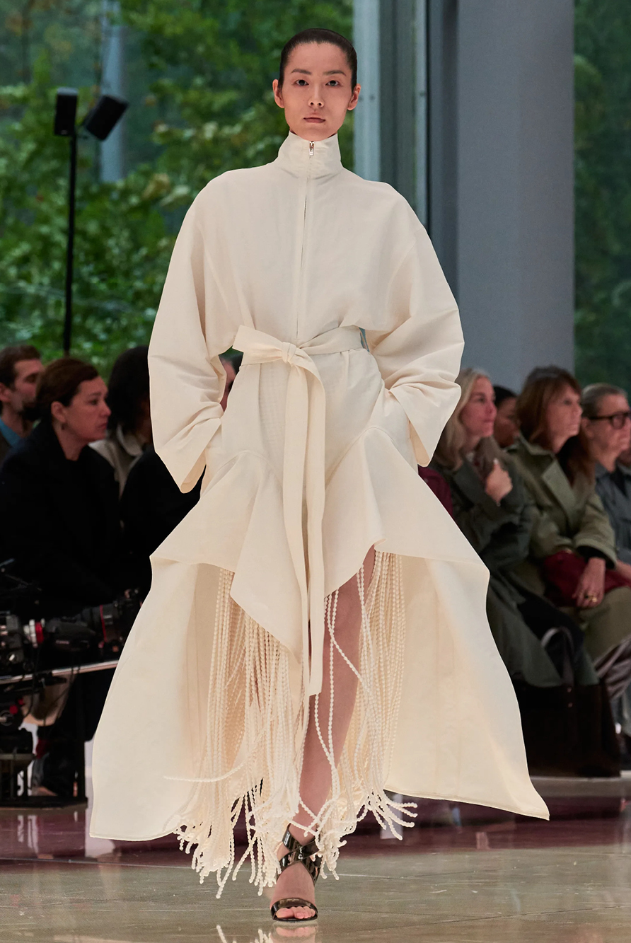 Givenchy and Schiaparelli embraced the barely there trend and leant all the way into the naked dress while others — think Miu Miu and Chemena Kamali’s Chloé — harped back to their respective brand DNA with the sixties’ shift and romantic ruching. The ateliers at Victoria Beckham, Celiné and Chanel approached menswear and casual suiting with the kind of ease of confidence that we’ve come to expect from all three, while Valentino and ALAÏA took a rose-tinted lens, cladding models in sequins, delicate lace appliqué and full plumage.