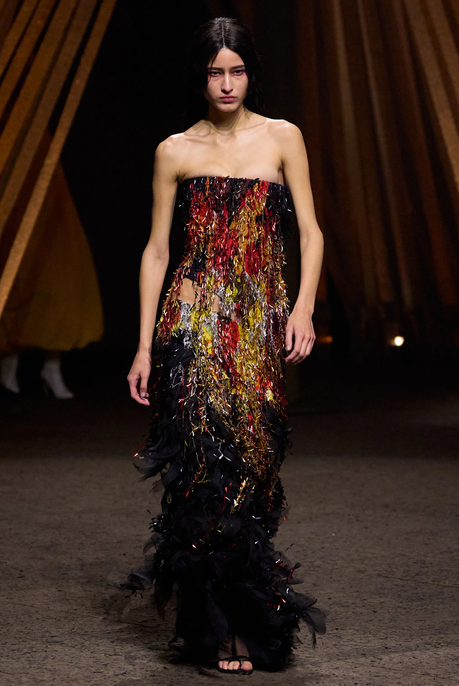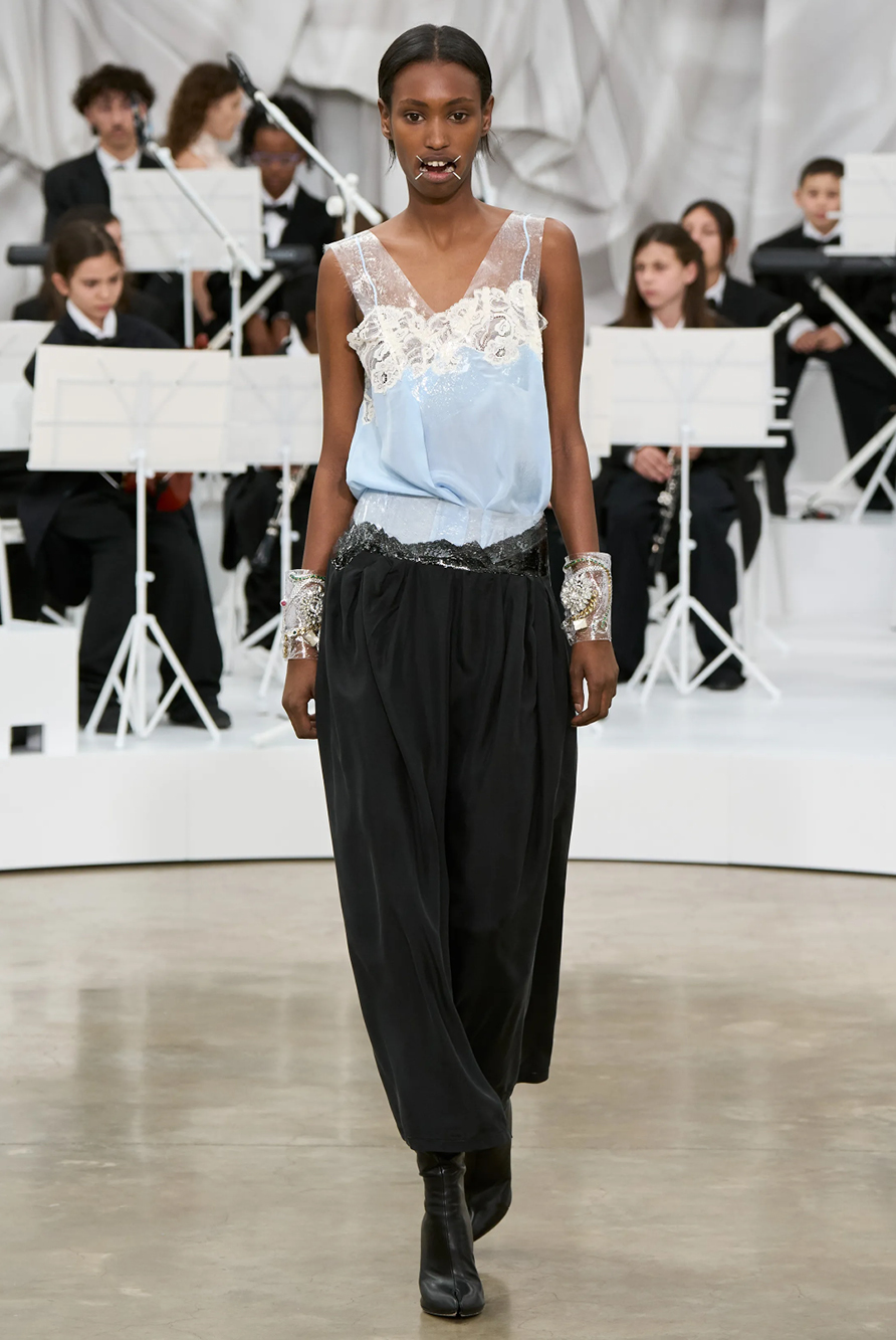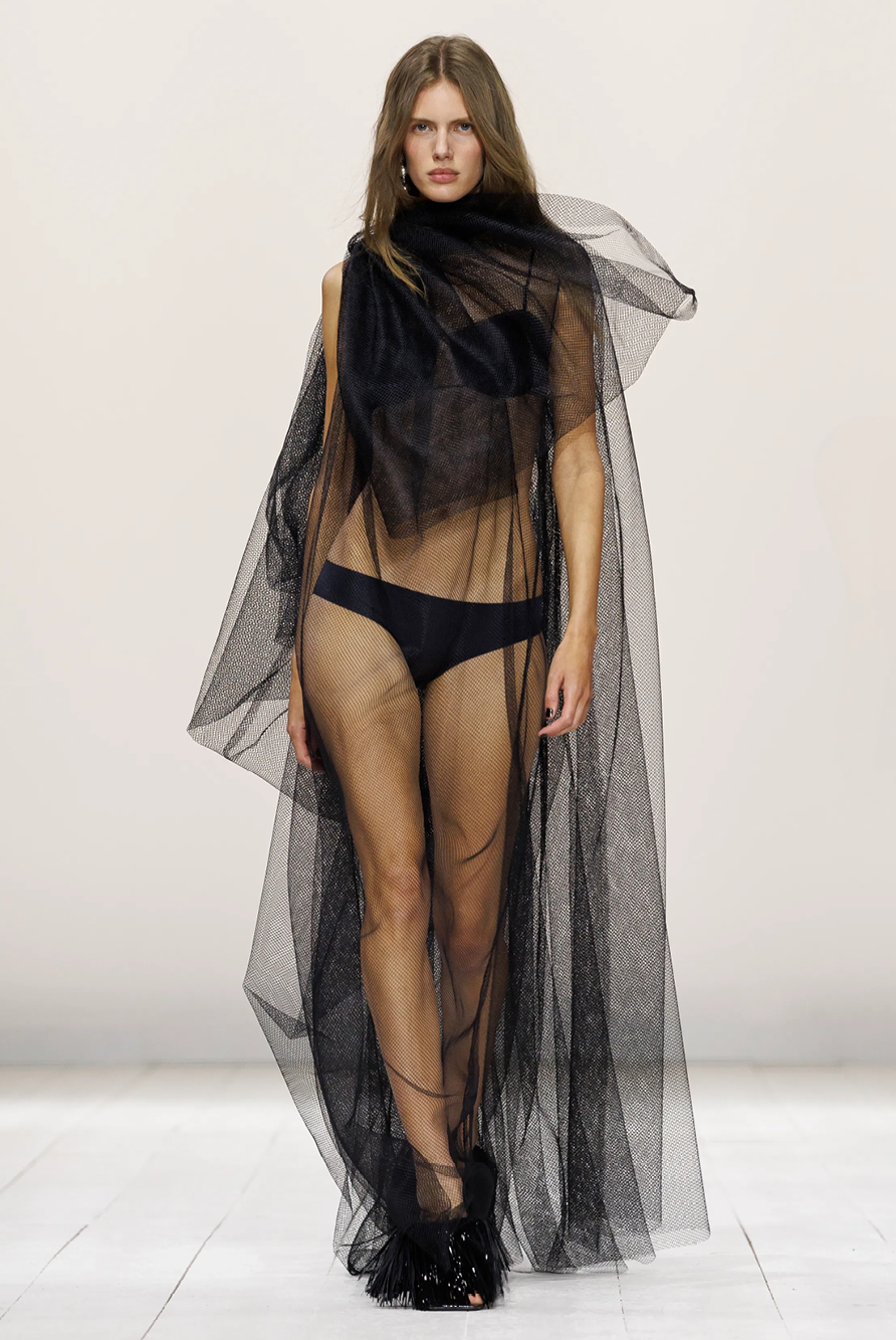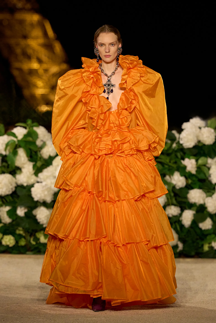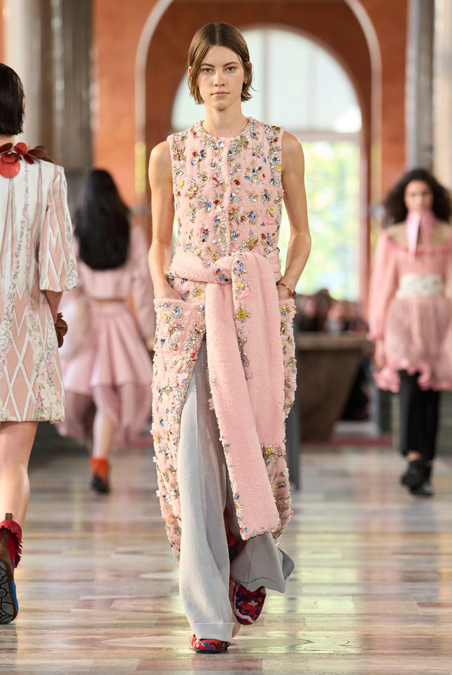 Givenchy and Schiaparelli embraced the barely there trend and leant all the way into the naked dress while others — think Miu Miu and Chemena Kamali’s Chloé — harped back to their respective brand DNA with the sixties’ shift and romantic ruching. The ateliers at Victoria Beckham, Celiné and Chanel approached menswear and casual suiting with the kind of ease of confidence that we’ve come to expect from all three, while Valentino and ALAÏA took a rose-tinted lens, cladding models in sequins, delicate lace appliqué and full plumage.