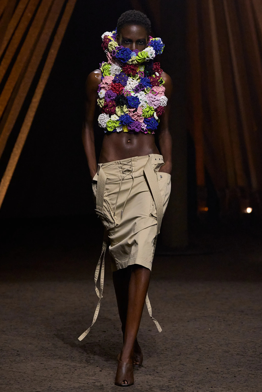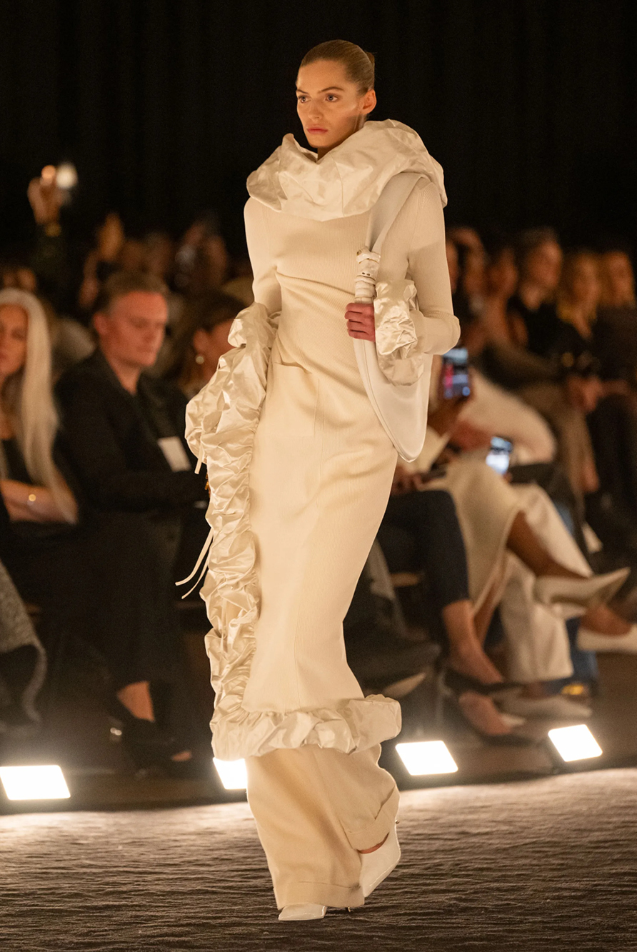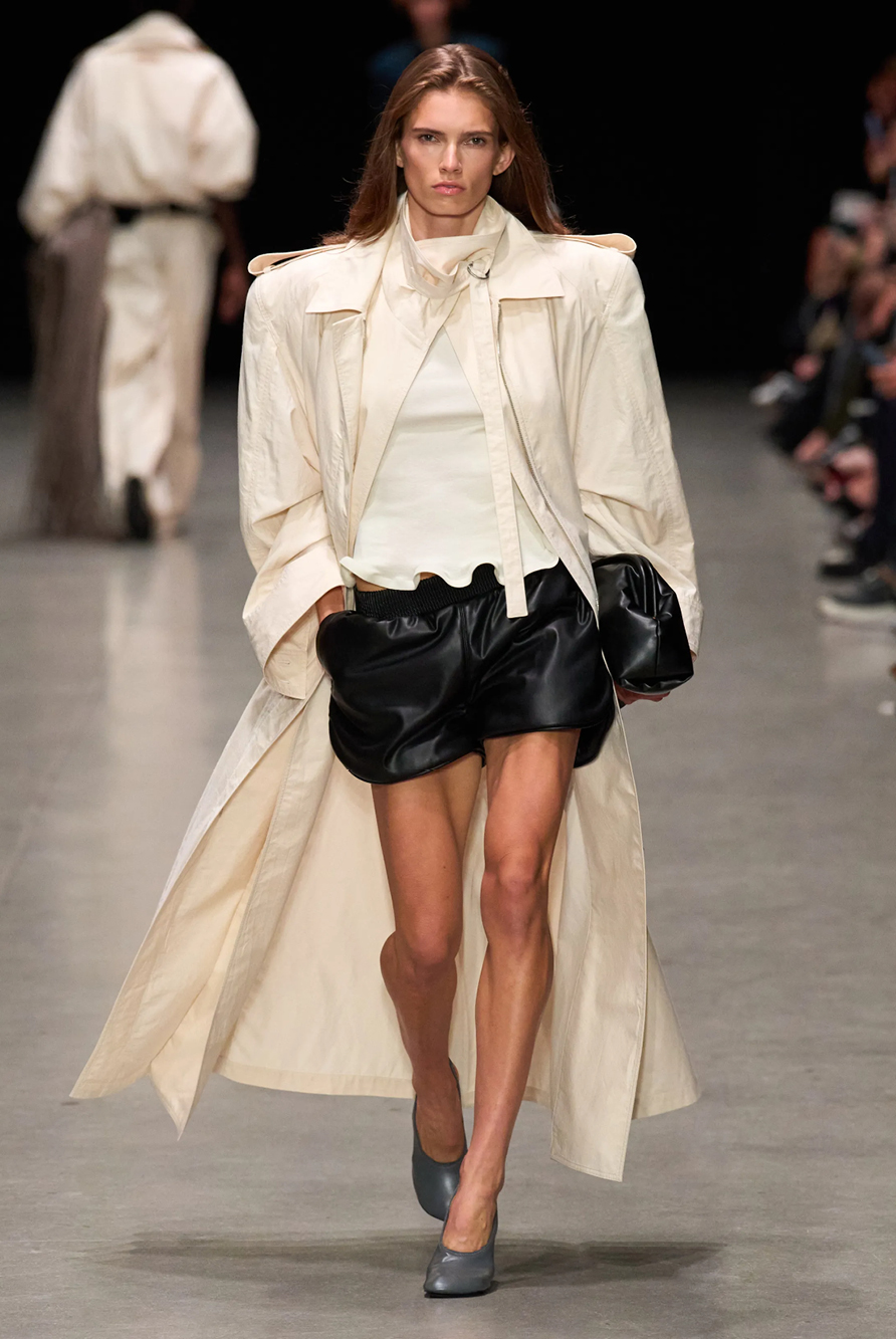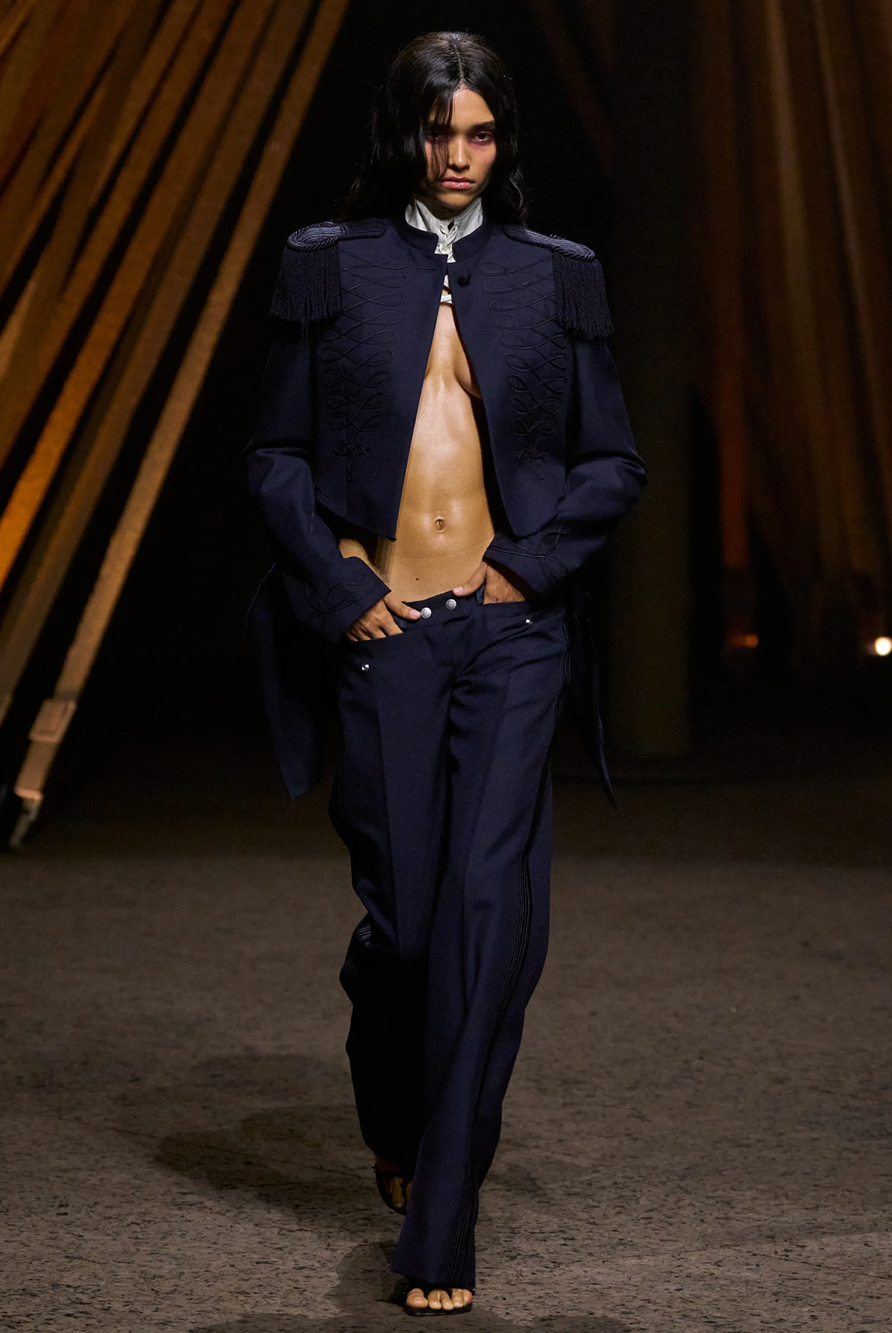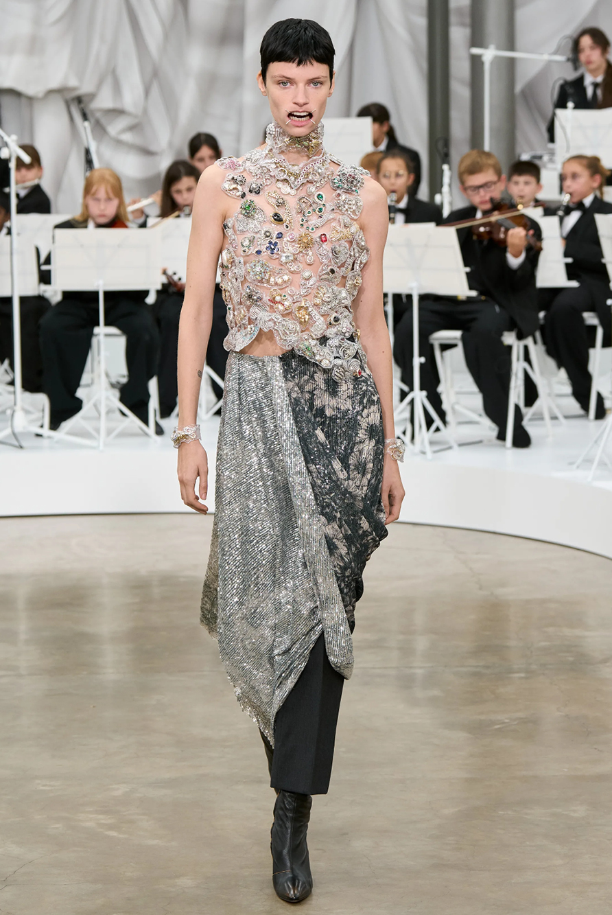 Givenchy and Schiaparelli embraced the barely there trend and leant all the way into the naked dress while others — think Miu Miu and Chemena Kamali’s Chloé — harped back to their respective brand DNA with the sixties’ shift and romantic ruching. The ateliers at Victoria Beckham, Celiné and Chanel approached menswear and casual suiting with the kind of ease of confidence that we’ve come to expect from all three, while Valentino and ALAÏA took a rose-tinted lens, cladding models in sequins, delicate lace appliqué and full plumage.