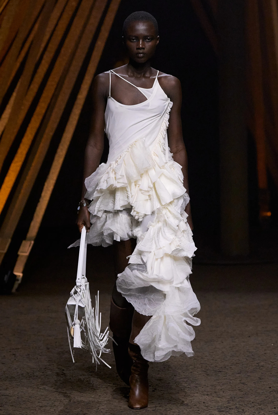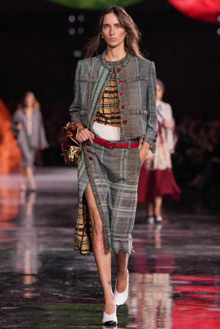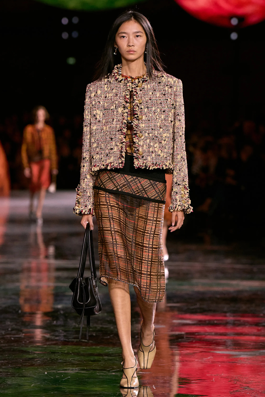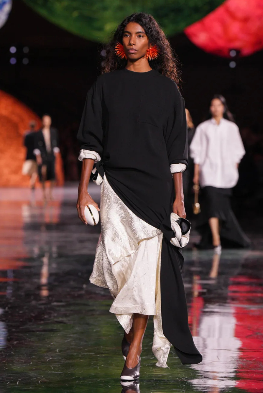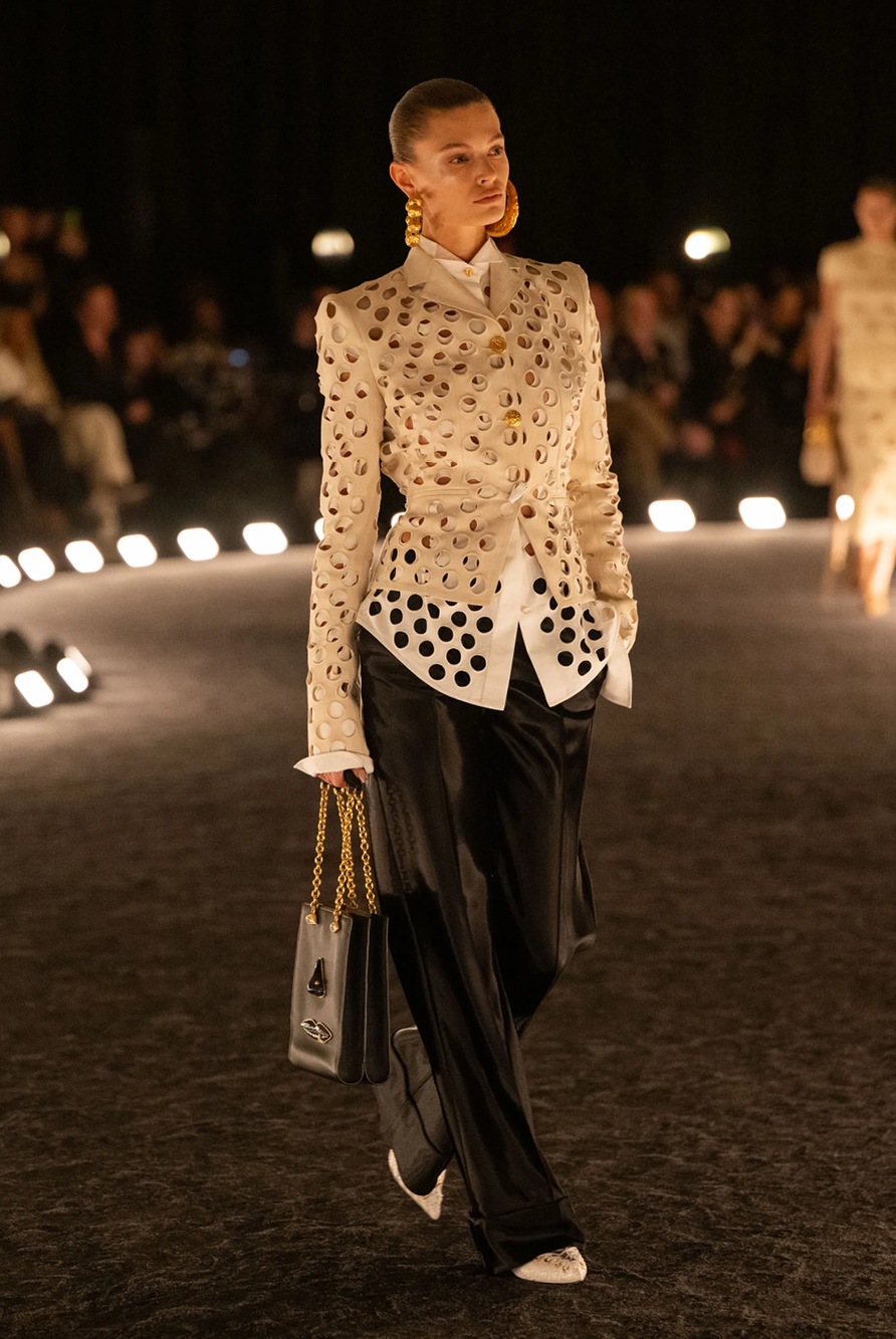 For the fashion fandom, the FROW did not cease to disappoint — notably Greta Lee, Jenna Ortega, Rosalia, Johnny Depp, Kylie Jenner and Robin Wright sat front and centre, while Dame Helen Mirren leant her voice to Stella McCartney’s off-beat homage to mother nature, featuring sinuous tailoring and a spoken rendition of The Beatles’ ‘Come Together.’