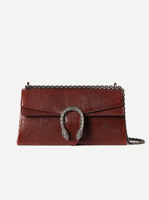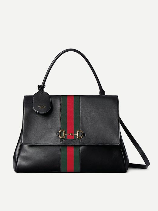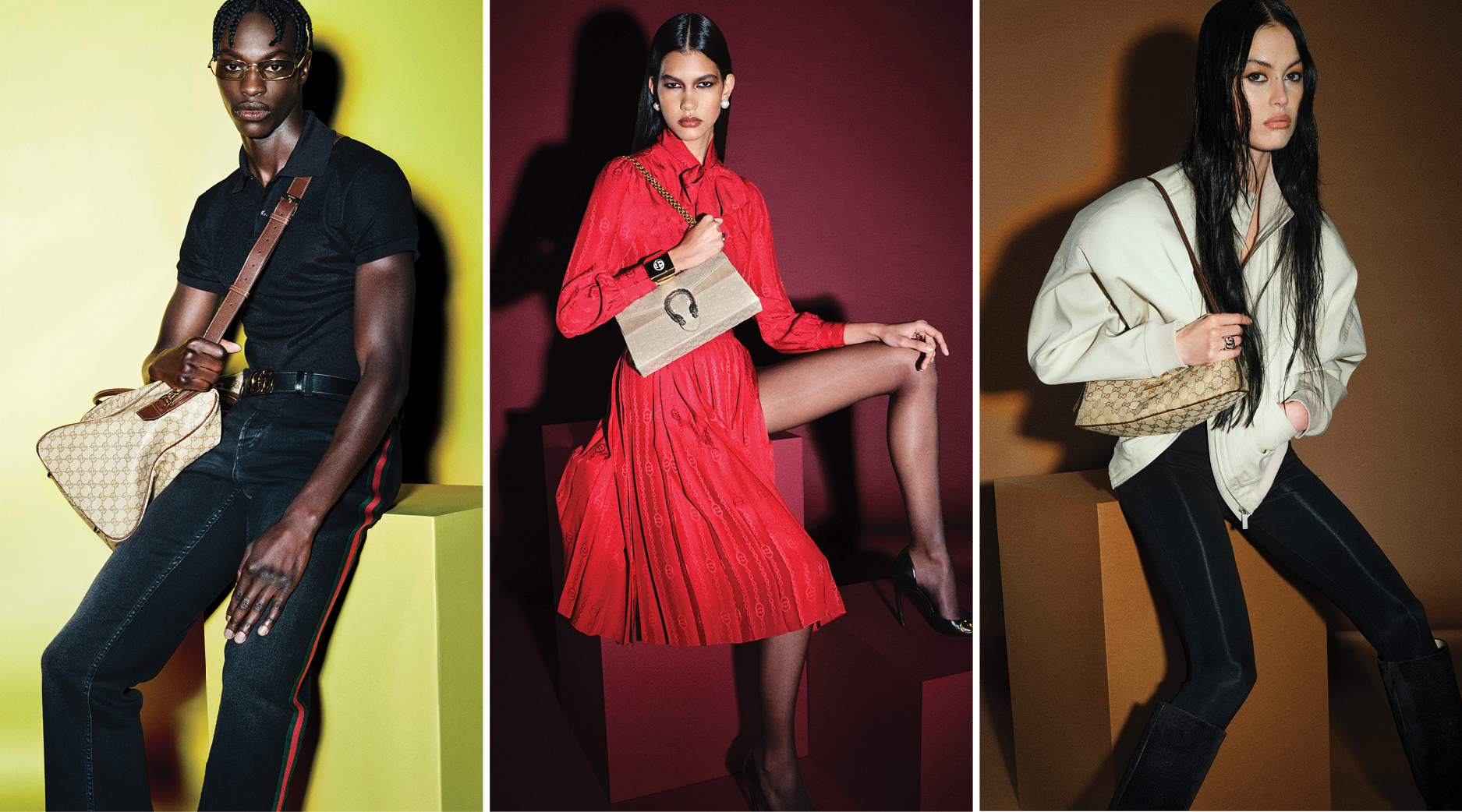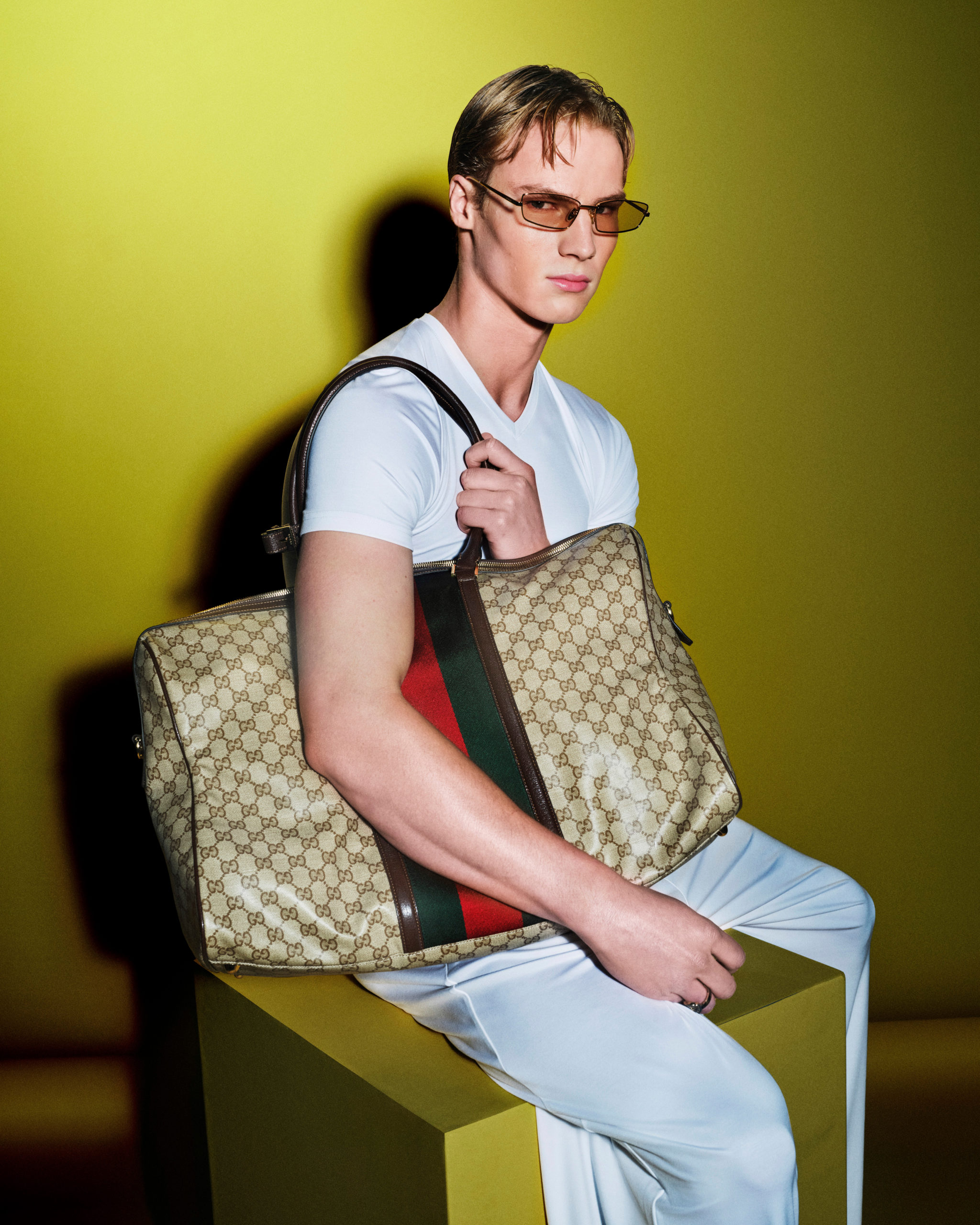 Then there are the accessories, which is where any serious Gucci conversation eventually lands. The Jackie 1961 returns in new proportions. The Dionysus sharpens into something more angular, more architectural. The Lunetta Phone+ arrives as a piece of genuine contemporary design. And the Paparazzo, the collection’s clearest thesis object, gathers the Web stripe and the Horsebit hardware into a single bag that the House describes, with a small, wry confidence, as defining Gucciness itself.