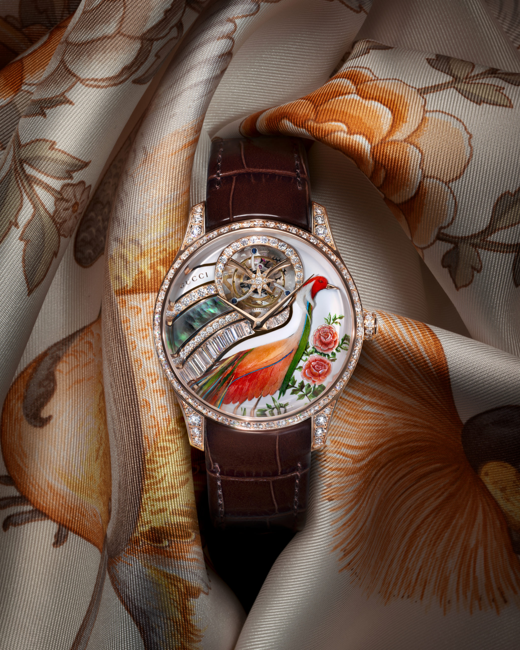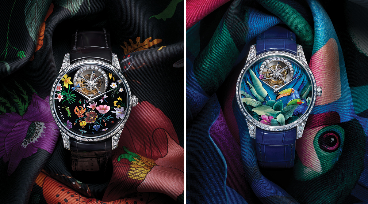 Gucci occupies an unusual position in watchmaking. It is, first and always, a fashion house, which means a portion of its watch output will inevitably be read through that lens: beautiful objects designed primarily for brand recognition and wrist presence, elegant without demanding the kind of close technical attention that keeps serious collectors awake. But to spend too long on that observation would be to miss the point of Gucci’s 2026 collection, because the Métiers d’Art pieces exist in a different register. This is where the house’s archive, some of the most exquisite artisanal techniques in the industry, and a French feather artist named Nelly Saunier converge on four 40mm white and rose gold tourbillons that are, without qualification, among the most extraordinary watches I saw in Geneva this year.