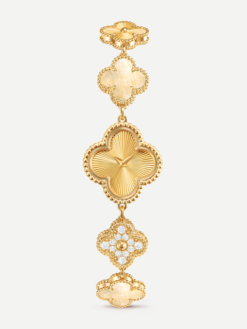 Officially debuting on November 1st, the Sweet Alhambra Jewellery Watch elegantly connects the Maison’s storied past with its dazzling future. The iconic motif is reimagined with secret mechanisms and guilloché gold, now adorned with radiant stones.