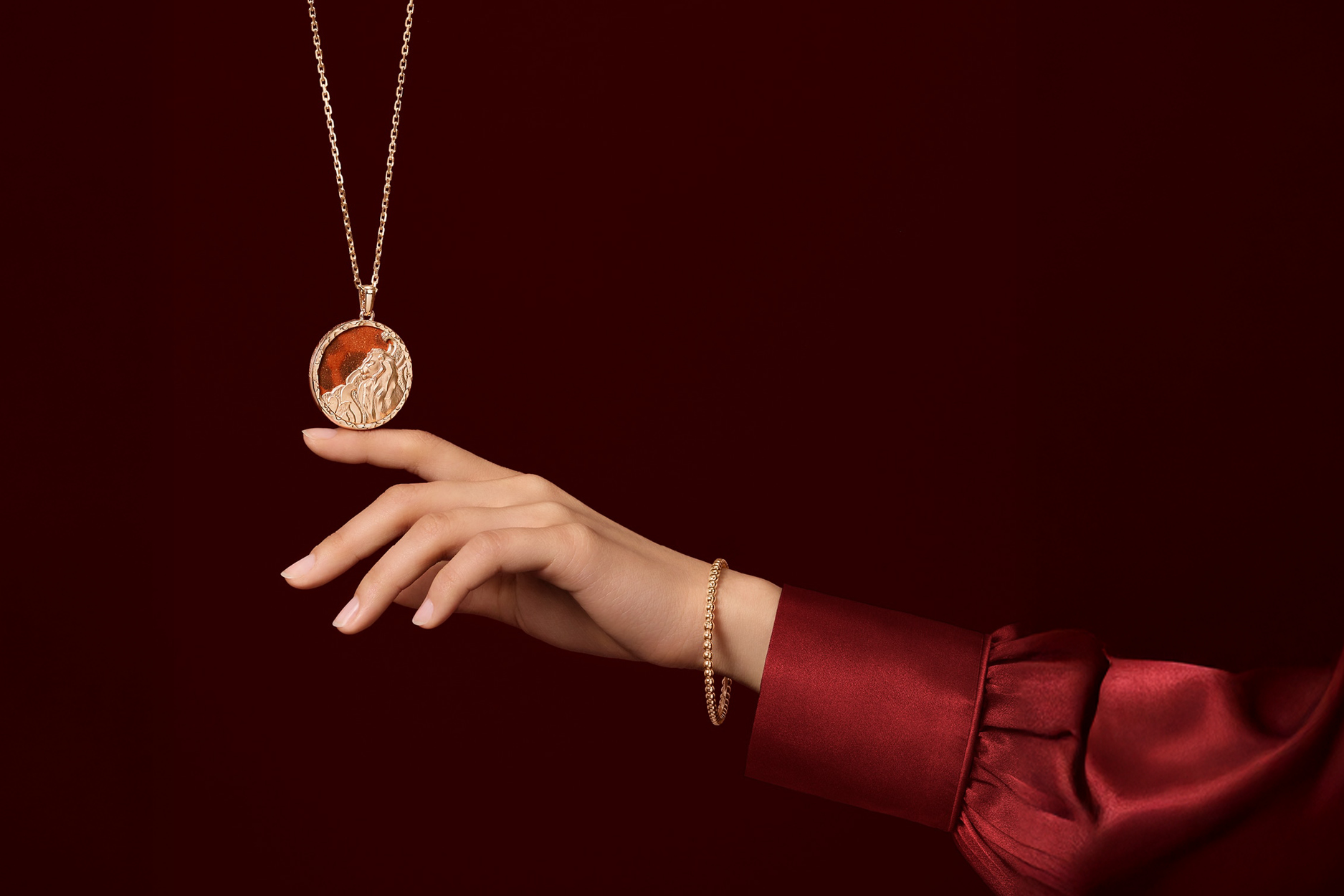 The craftsmanship only deepens that appeal. Each medal is produced using the age-old technique of stamping, requiring up to eight strikes depending on the complexity of the sign. After shaping, the gold is meticulously reworked by hand to achieve a delicate patina, allowing polished three-dimensional motifs to glow against a subtly textured surface. It is a reminder that true luxury is rarely loud. Instead, it reveals itself through touch, movement, and the quiet assurance of something exceptionally well crafted.