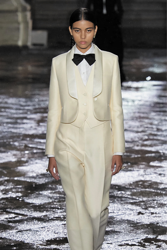 If the occasion calls for something formal but not quite black tie, the perfect look can be found in flattering, tailored separates, timeless accessories and a monochromatic palette.