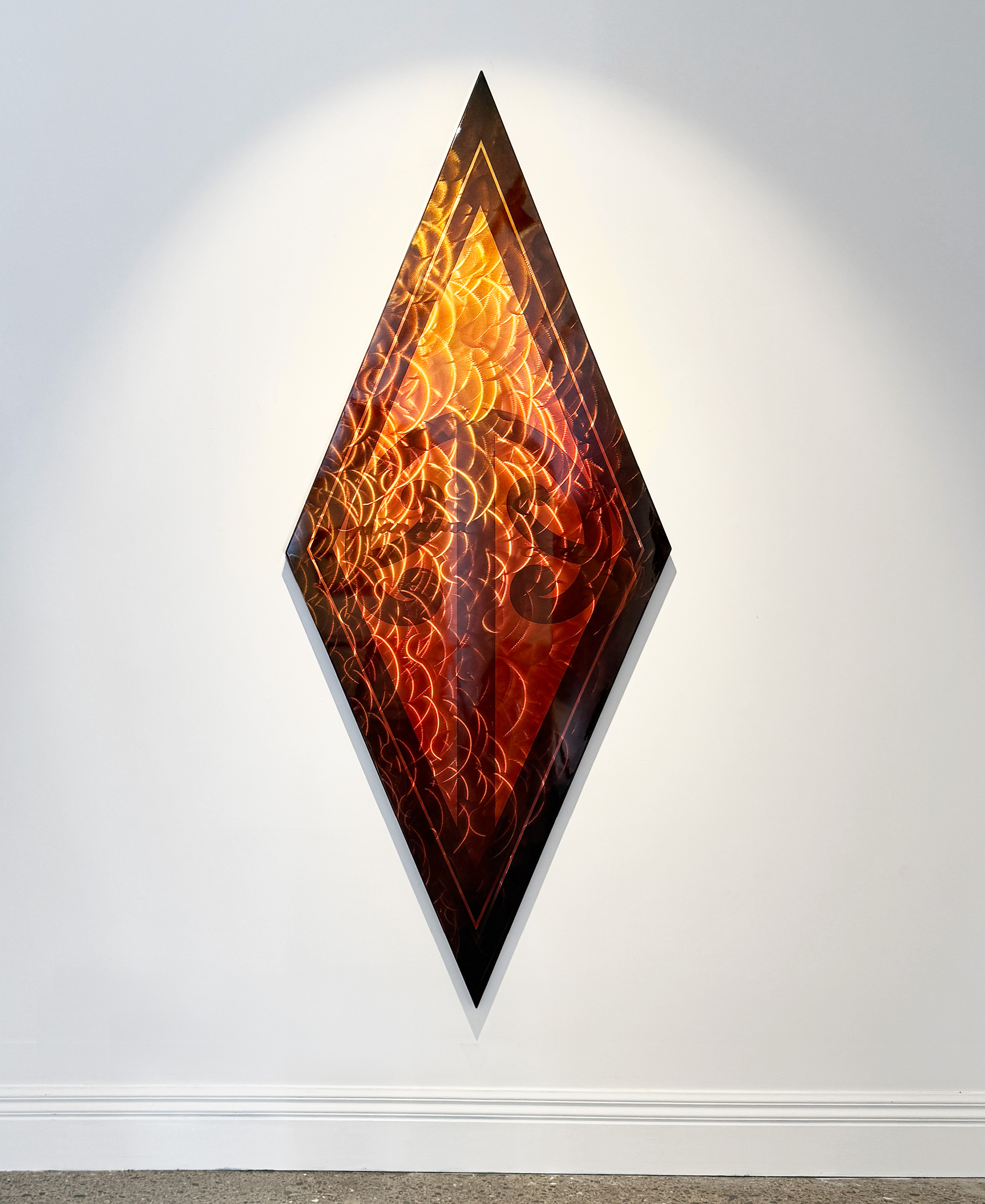 Endeavouring to answer the question ‘what is haka?’, each piece is anchored in the war dance, from the physical representation in Chris Bailey’s Kaitiaki sculpture, to Robert Jahnke’s A Matter of Principle ii, which uses iconography, light and reflection to explore Eurocentric educational narratives in New Zealand’s history. One only needs to look at the response to Hana-Rāwhiti Maipi-Clarke’s haka as protest in parliament late last year to see that the haka remains greatly misunderstood. Through this exhibition, each piece aims to investigate this performance that holds such a key facet of New Zealand culture and the way it intermingles with Aotearoa in the present day.