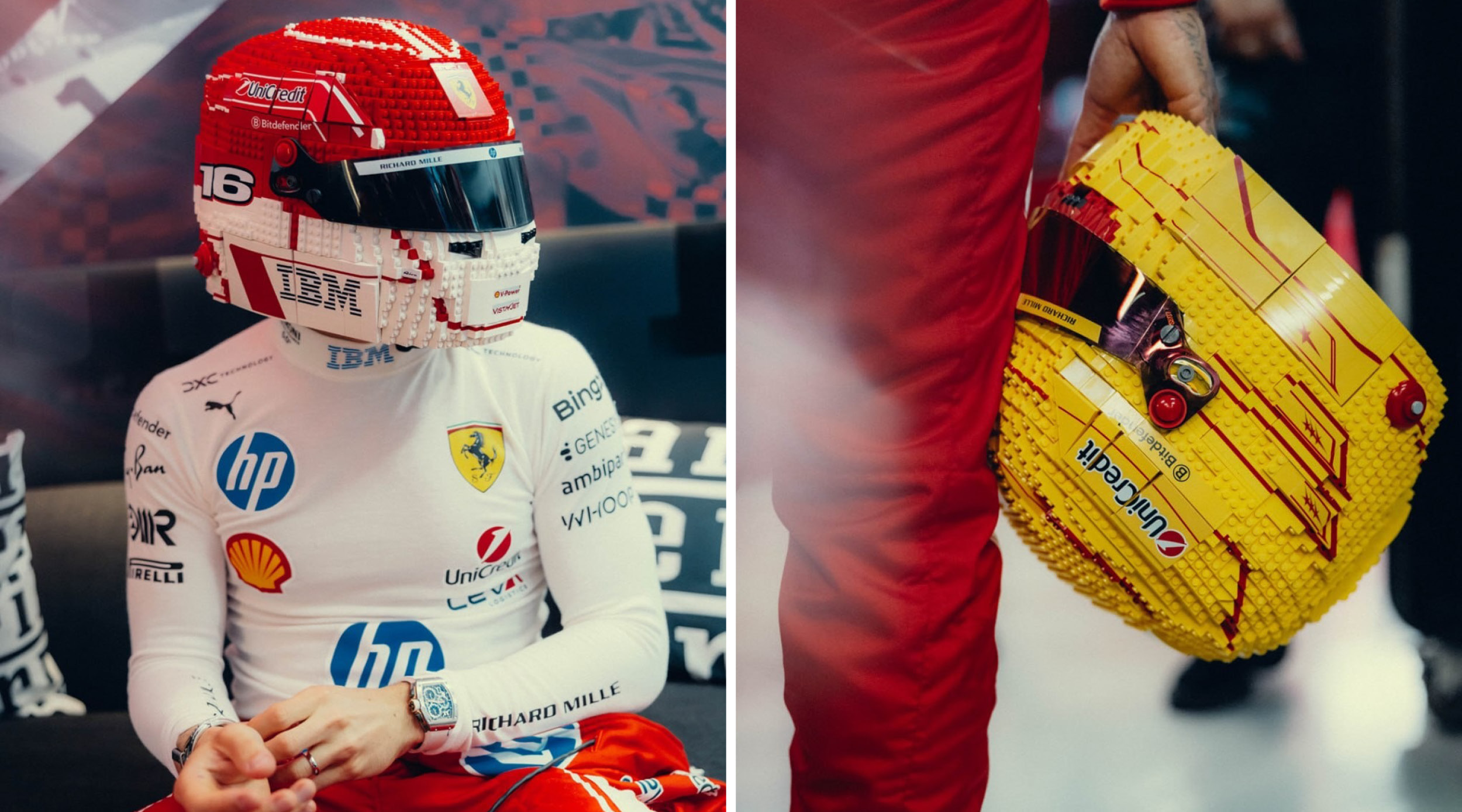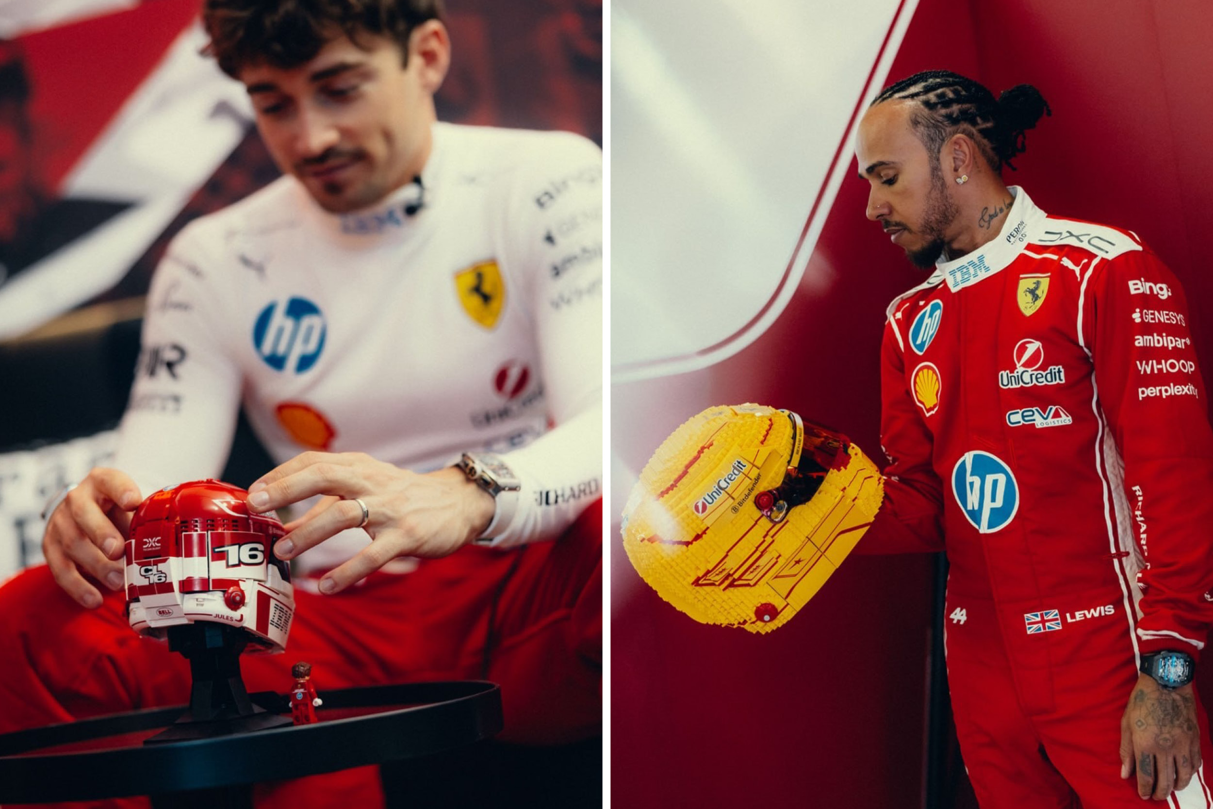 Formula One’s 2026 season has extended the spectacle beyond the grid, arriving in brick-built form. Two sharply executed LEGO helmets that celebrate Scuderia Ferrari drivers Charles Leclerc and Lewis Hamilton. First revealed trackside, when both drivers appeared carrying life-sized, brick-built versions of their helmets, the actual sets feature Leclerc’s 886-piece helmet that captures his personal nuances from his signature number 16 to tributes to his late father and Jules Bianchi.
