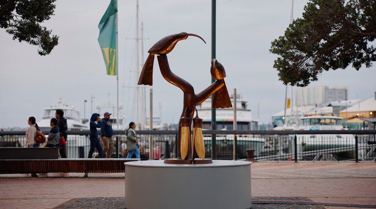 In celebration of the upcoming Aotearoa Art Fair, Auckland’s Viaduct Harbour, in collaboration with Gow Langsford, has erected a sculpture by one of New Zealand’s leading cultural figures — the late artist and sculptor Paul Dibble.