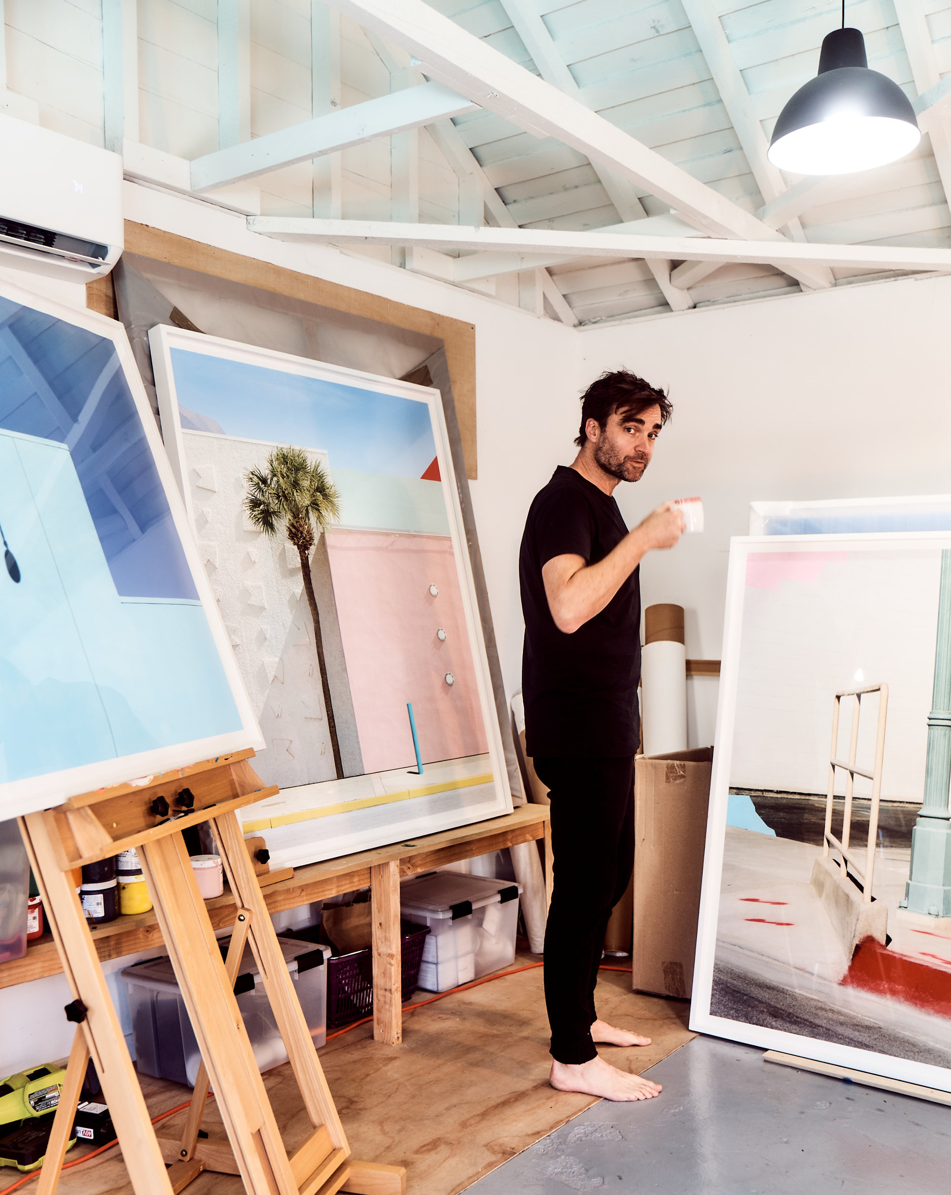 Known for his work that sits at the intersection of realism and abstraction, George Byrne is a multi-faceted artist with a lifelong connection to creating. From a suburban Australian upbringing to years spent on the road as a musician, to now, living in LA as a full-time artist, Byrne has developed a distinct style that draws on the rich tapestry of his life, infusing urban photography with constructed abstraction. Here, he reflects on his craft, career, and the next chapter in his creative evolution.