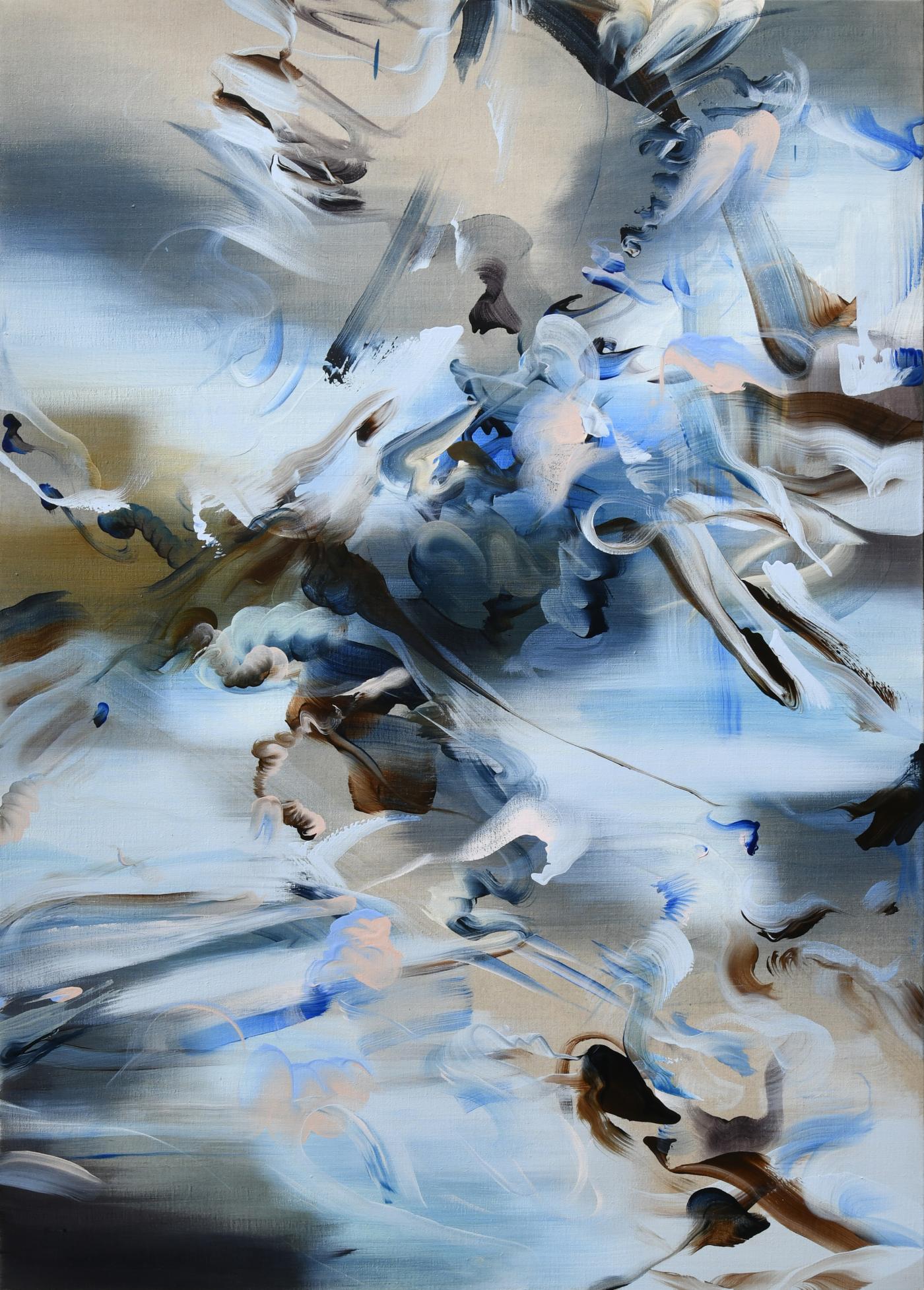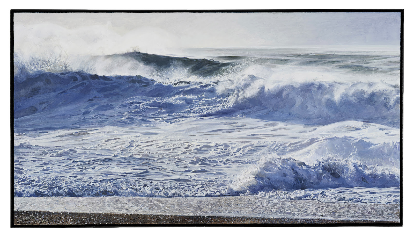 A considered group presentation across four artists. Natasha Wright’s large-scale oils and works on paper deal directly with the female form and gaze. Julia Holderness brings hand-painted ceramics and watercolours drawn from her studio archive, quietly revisionist work in the history of female painting in Aotearoa. Simon Kaan (Kāi Tahu, Kāti Mamoe, Waitaha) offers meditative paintings of waka set against dissolved horizons of sea and sky, while Freeman White rounds out the booth with bold, animated seascapes.