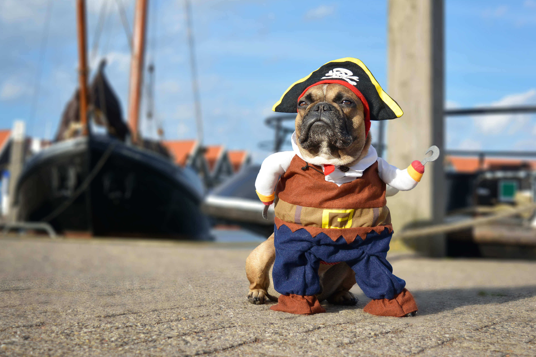 A pirate pug? Adorable. This one lends itself to the perfect owner-pet coordinated costume moment. Bonus points for the little Captain Hook paws.