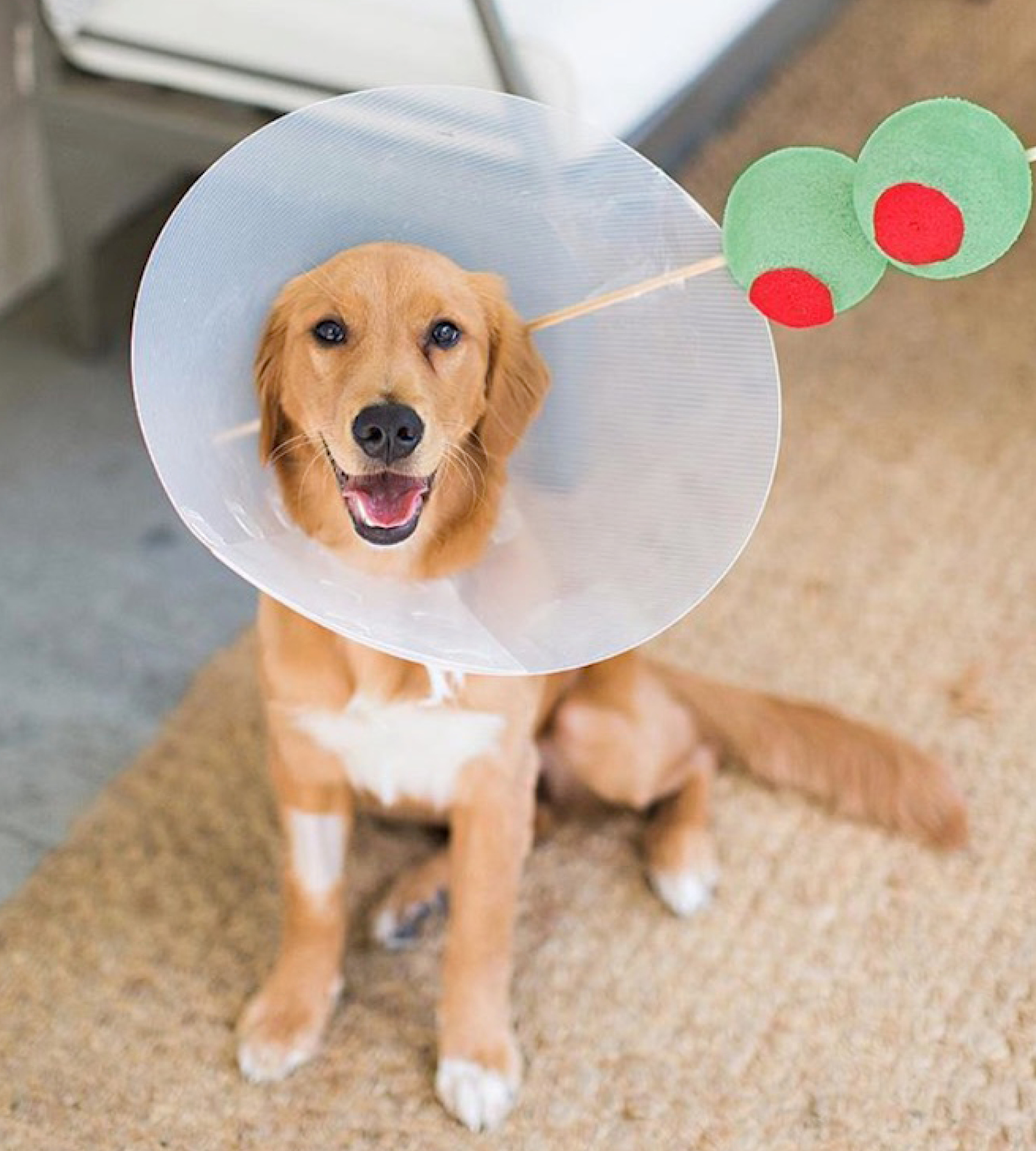 Serving as both an homage to the classic cocktail and a powerful way to reframe the dreaded cone, this dirty martini costume never gets old and is surprisingly easy to achieve.