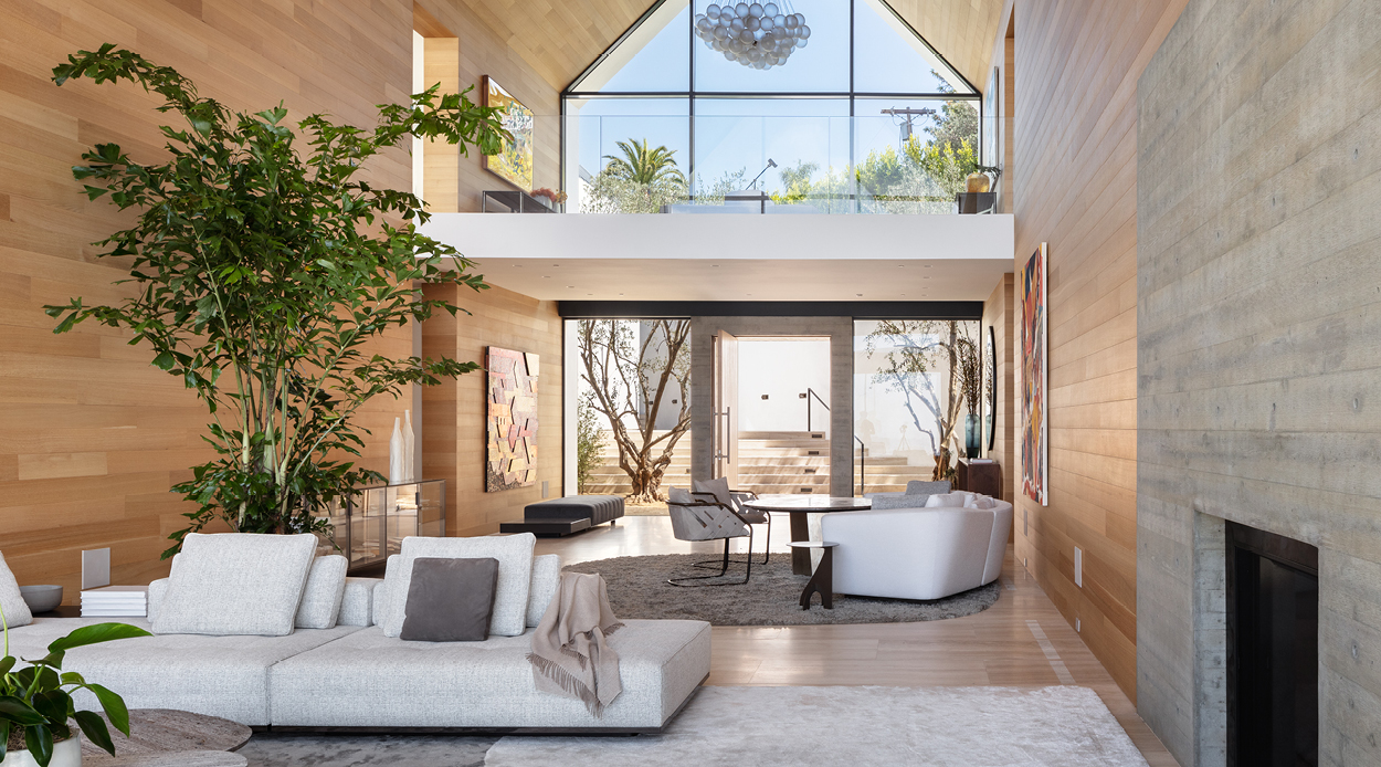 Standing proudly on a one-acre promontory in the Hollywood Hills, the Forest Knoll house surveys Los Angeles with a calm indifference. Designed by Standard Architecture and furnished by Minotti Los Angeles and MASS Beverly, the 11,000 square-foot home embodies the quintessential Southern Californian lifestyle while simultaneously feeling removed from anything one would expect to find in the middle of a bustling metropolis.