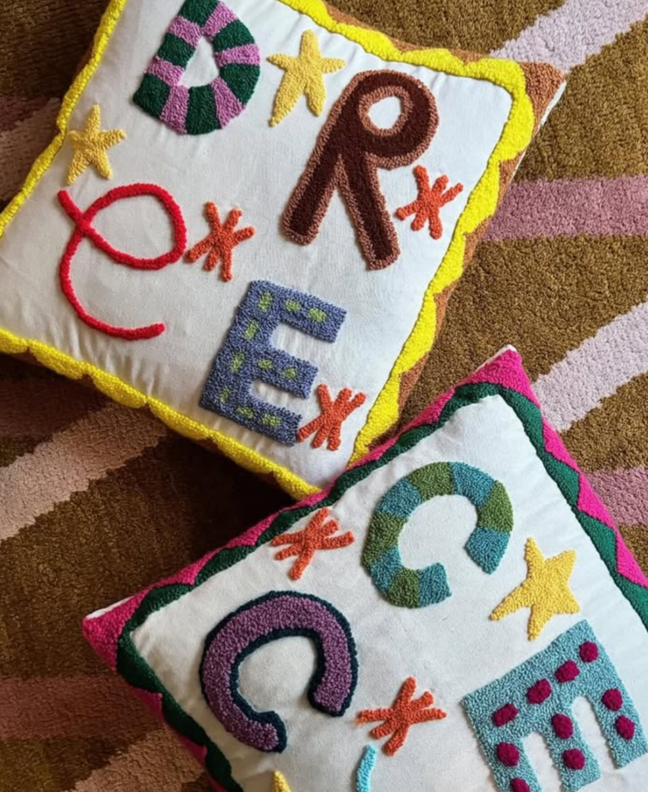 Among the most poignant offerings are the personalised cushions by Big Little Store in collaboration with Julie Baby Punch Club. Founded during lockdown in Pretoria by Andel Olivier, each cushion is individually hand-punched and customised with a child’s name. Not printed. Not machine-embroidered. Crafted slowly and intentionally. As demand grew, Olivier brought women from her community into the Punch Club, creating employment that has funded education, housing and independence. The beauty of the cushions is inseparable from the impact behind them.