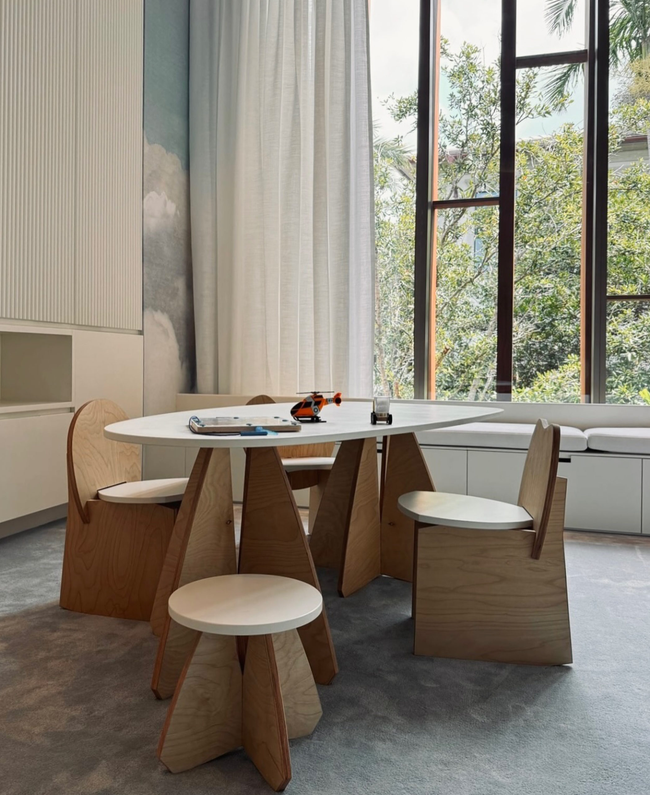 Another cornerstone label is House of Roro, founded by Belgian interior designer Anne Sophie Rosseel. Frustrated by juvenile design that underestimated children, she began creating furniture that invites interaction and independence. Named after her son’s teddy bear, the collection balances playfulness with restraint, producing pieces designed to evolve rather than be replaced.