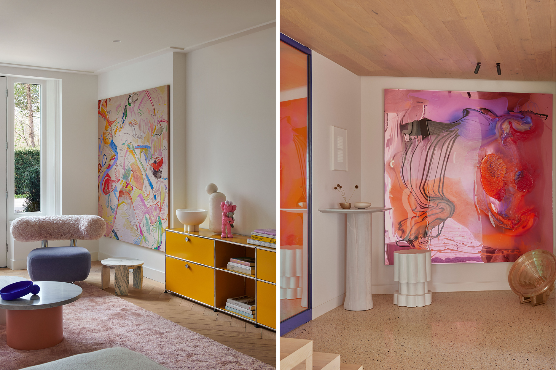 While dopamine dressing might feel a little more straightforward — wear what makes you happy, essentially —both philosophies ultimately share the same principles. Think vibrant colours and prints that immediately elevate not only your home’s aesthetic but also uplift your mood, simultaneously activating neural pathways and releasing the feel good love hormones we crave. Rugs that spark memory of a milestone vacation or fabrications that soothe your senses or regulate your nervous system — the opportunities are endless.