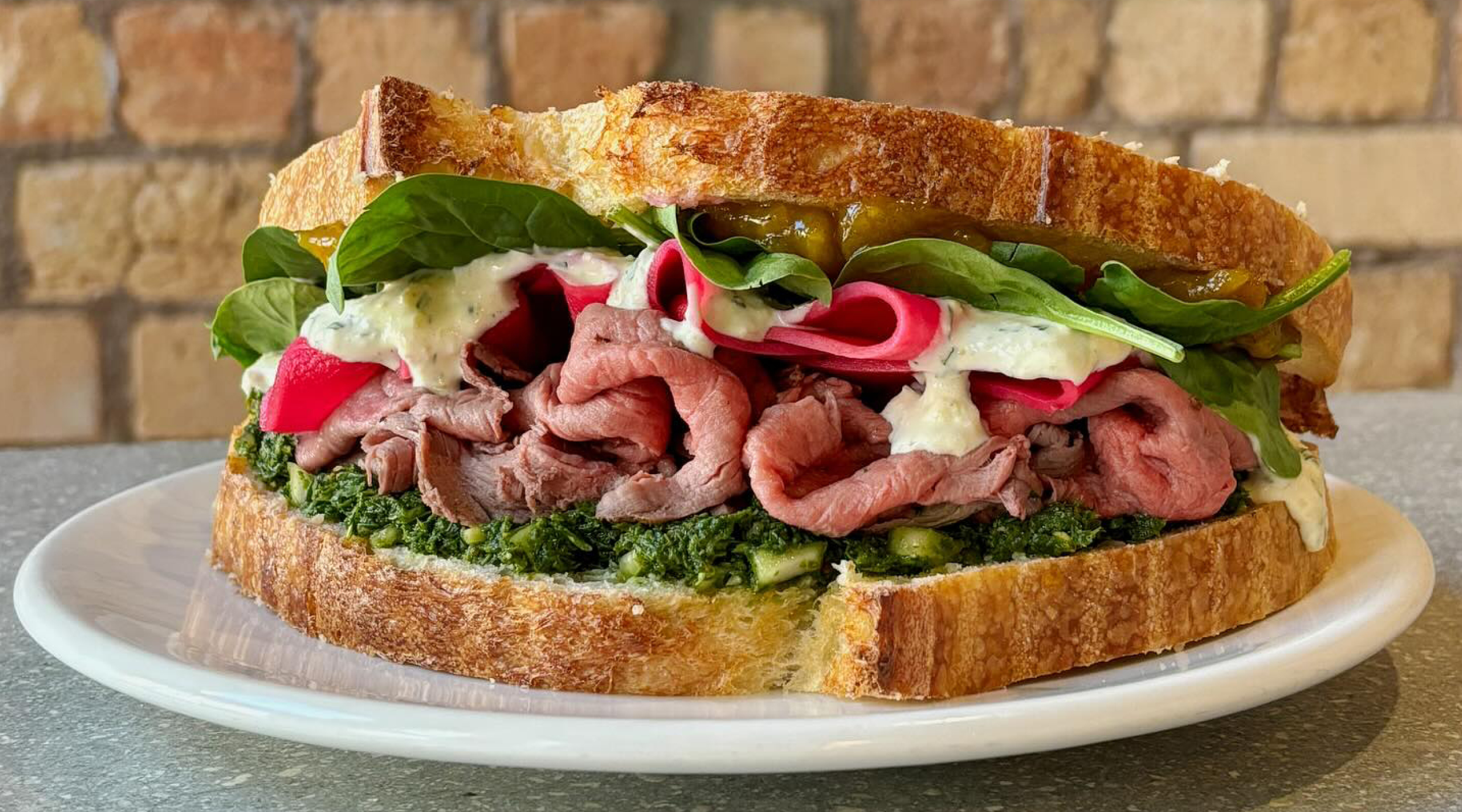 Knead on Benson may be known for its flaky pastries and stellar coffee, but their sandwiches deserve a spotlight of their own. The chicken iteration is a fail-safe, pairing roast chicken tossed in a creamy, herby mayo, with crisp cos lettuce and a touch of pickle tang, between slices of their signature fresh-baked sourdough. It’s simple, yes — but executed with the kind of care that makes you come back for it again (and again).
