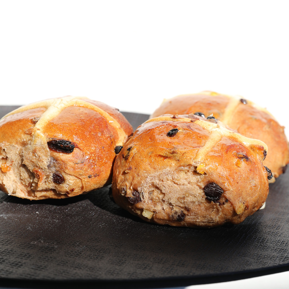 From French patisserie La Petite Fourchette (and their sister venue, Copain) comes some of the most authentic French buns we’ve tried. These unique takes are incredibly soft and spongy, evidently fresh from the oven, and decidedly French. Generously, we were allowed to sample both the traditional buns and the chocolate buns — and while the traditional were delicious, the chocolate was a stand out. More like a chocolate brioche than a hot cross bun per se, the soft, buttery bread was light and fresh, with chocolate chips smattered through in perfect ratio. These are the ultimate Sunday morning, long weekend breakfast in bed companions, and could easily double as a tasty after dinner treat.
