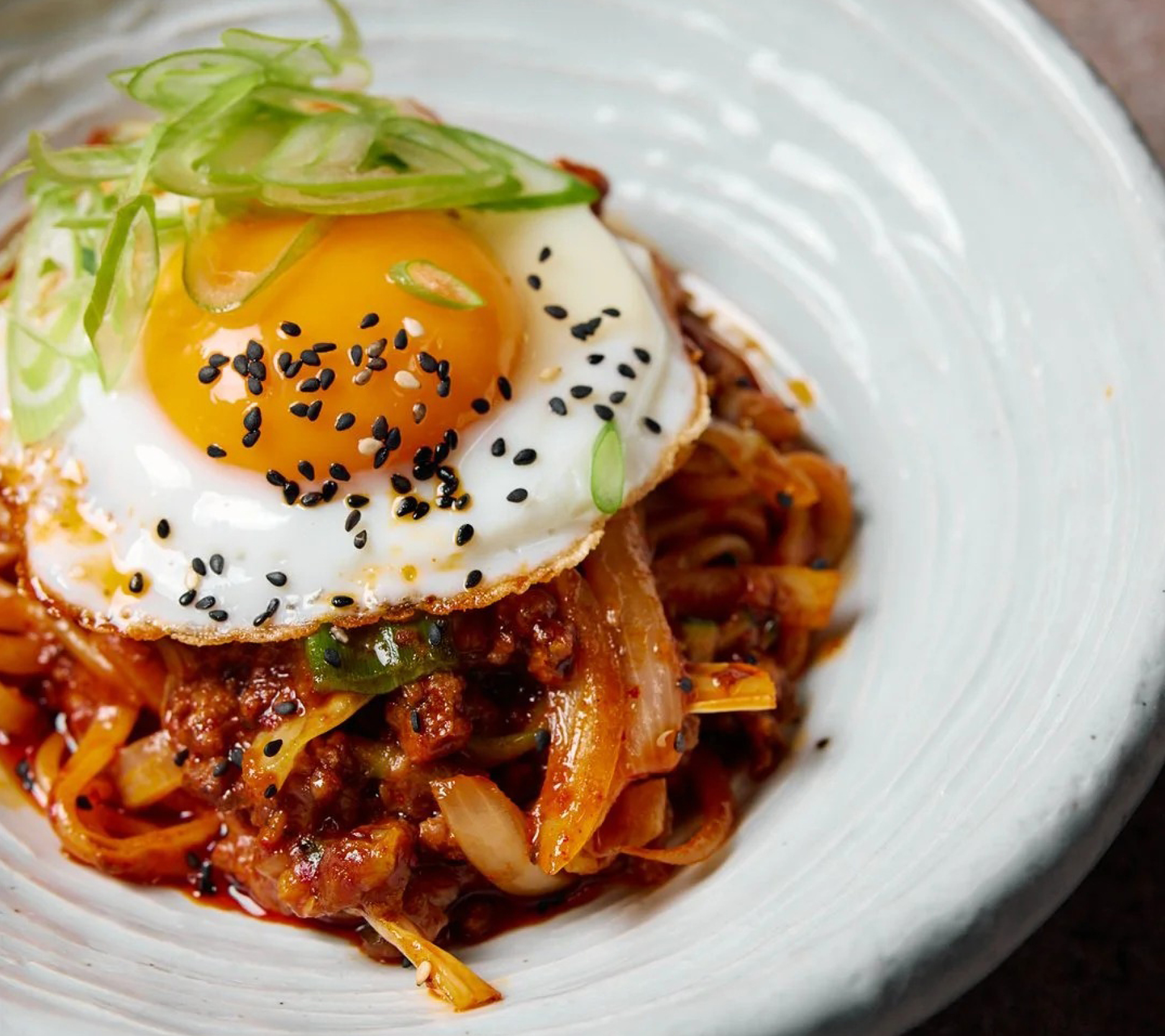 On the menu you’ll find the likes of rice bowls, noodles, fried chicken, and perhaps the star of the show, Korean hot dogs, as well as a slew of satisfying sides. The rice bowls run the gamut from gooey BBQ tofu or chicken to bulgogi beef, gochujang pork or chicken, and the more traditional bibimbap, while the noodle bowls lean a little more adventurous, with a hero ‘K-spag’ bowl featuring a mix of knife-cut noodles with stir-fried pork crumble, veg, and gochujang sauce. Ockhee’s beloved ‘Japchae’ also appears on the menu.