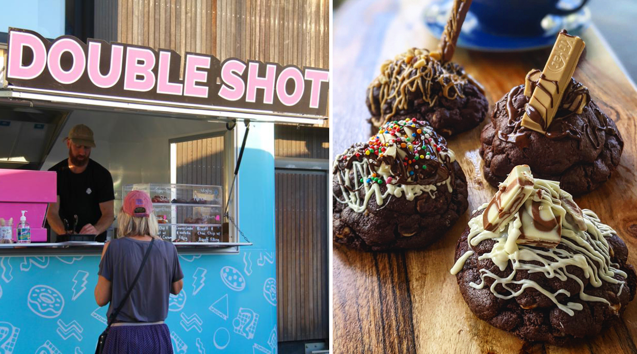 Double Shot is the new food truck that Watson and Steel launched a couple of months ago, specialising in perfectly-brewed coffee and mouthwatering sweet treats. Having both realised their passions for baking overseas, the duo had been experimenting with recipes long before anything official was on the cards. “We would do ‘cheat day’ bakes,” Watson says, outlining how it was during these days dedicated to decadence that the foundations for Double Shot were laid. “Now,” he continues, “everything we sell at the food truck we make ourselves and we love trialing new techniques and flavours.”