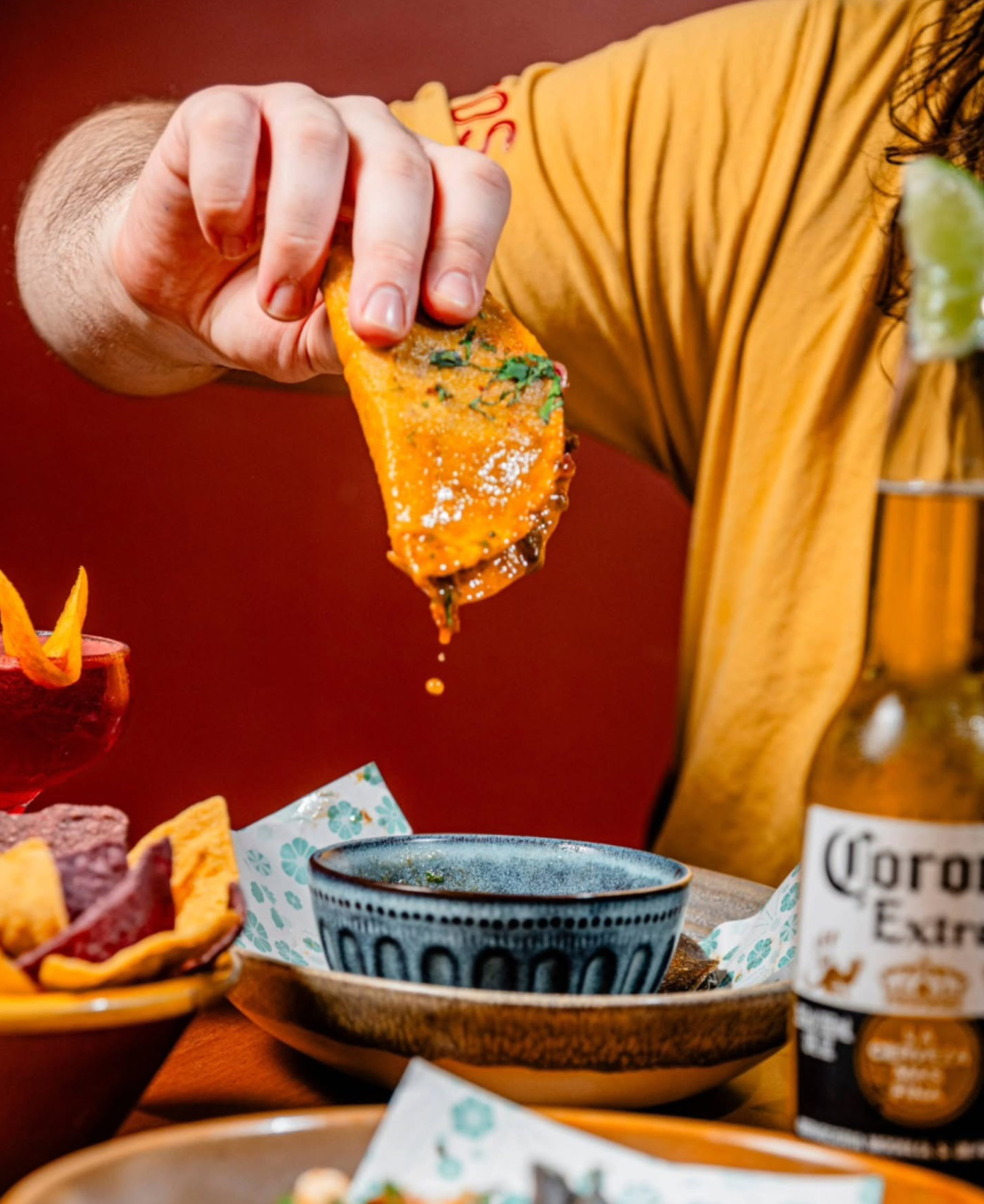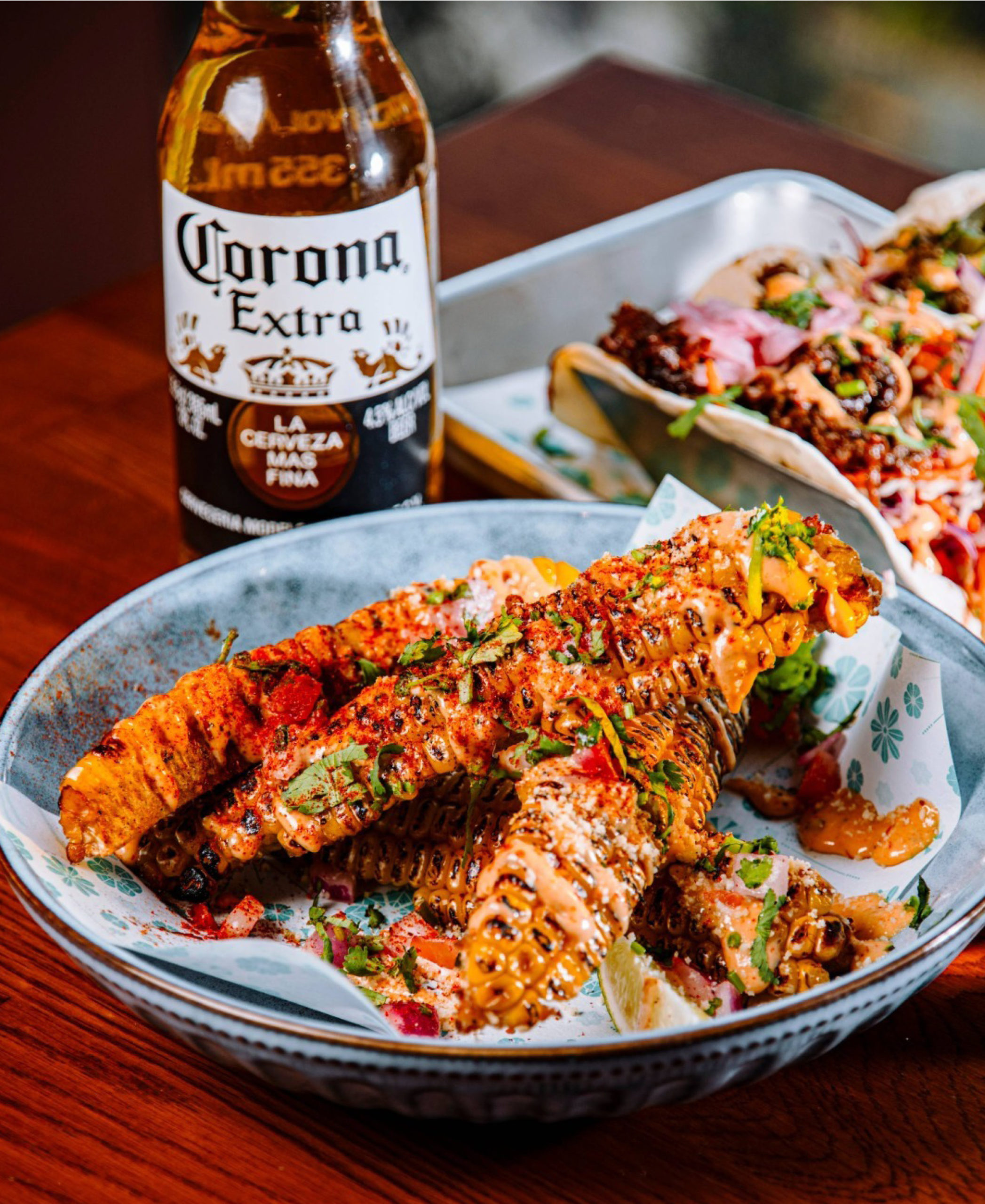 The frozen margaritas are already proving to be their calling card. At $10 during happy hour (4 pm to 6 pm daily, alongside $10 wines and $8 Coronas), they’re sharp, icy and dangerously easy to justify. The food matches the energy, with birria tacos delivering the kind of slow-cooked depth that earns the wait. Then there’s the corn ribs, loaded with colour and crunch, and Enchiladas Borrachas with slow-cooked al pastor, mozzarella, salsa borracha, pickled onion and sour cream, which make a persuasive argument for ordering more.
