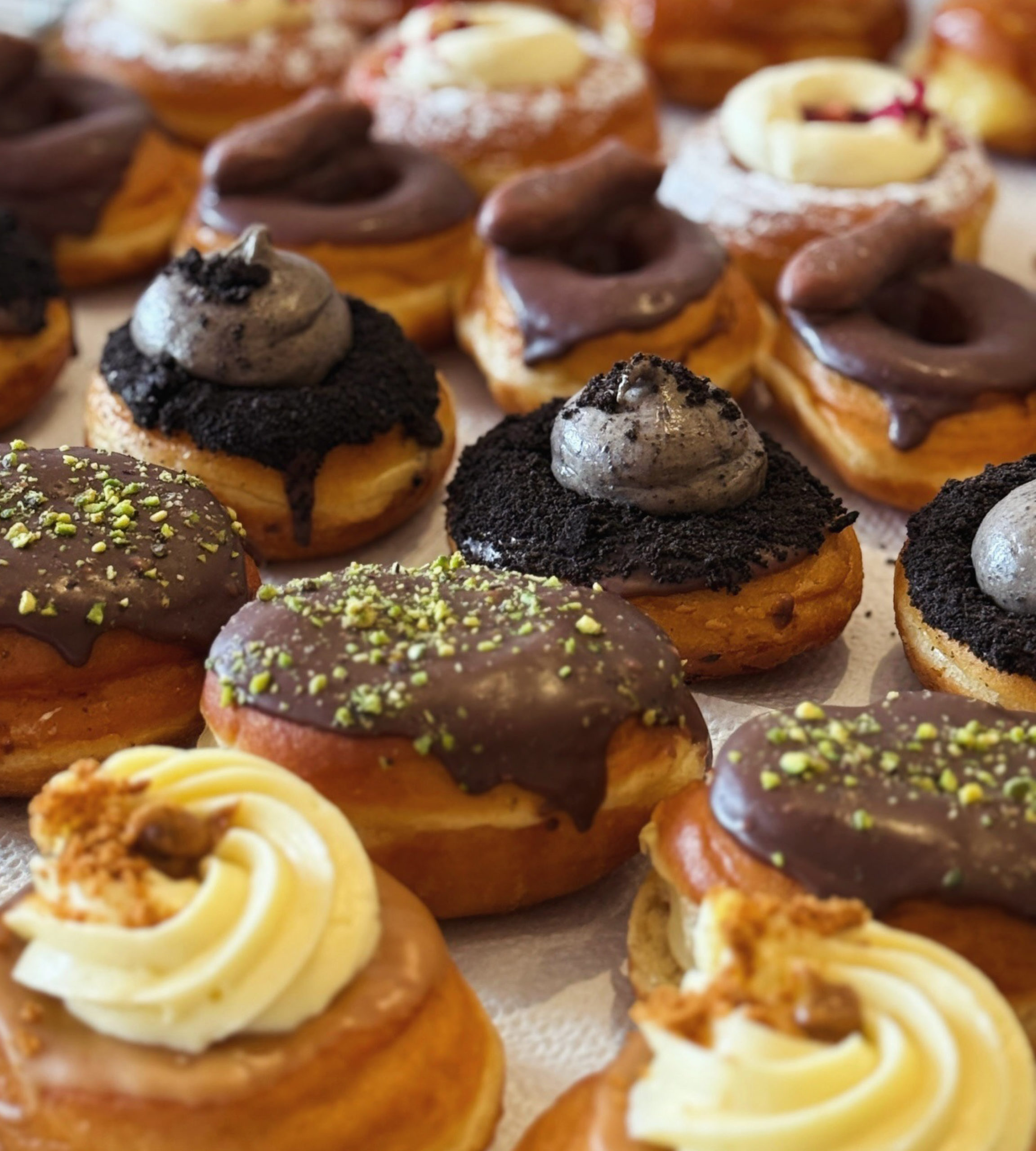 Doe Donuts has made a name for itself by turning familiar desserts into doughnut form, and doing it with real finesse. The current roster includes a crème brûlée number with torched sugar shell and vanilla crème pâtisserie, alongside an Oreo cream edition that leans into everything you want from that combination. Each one is handcrafted, generously filled, and gone far too quickly.