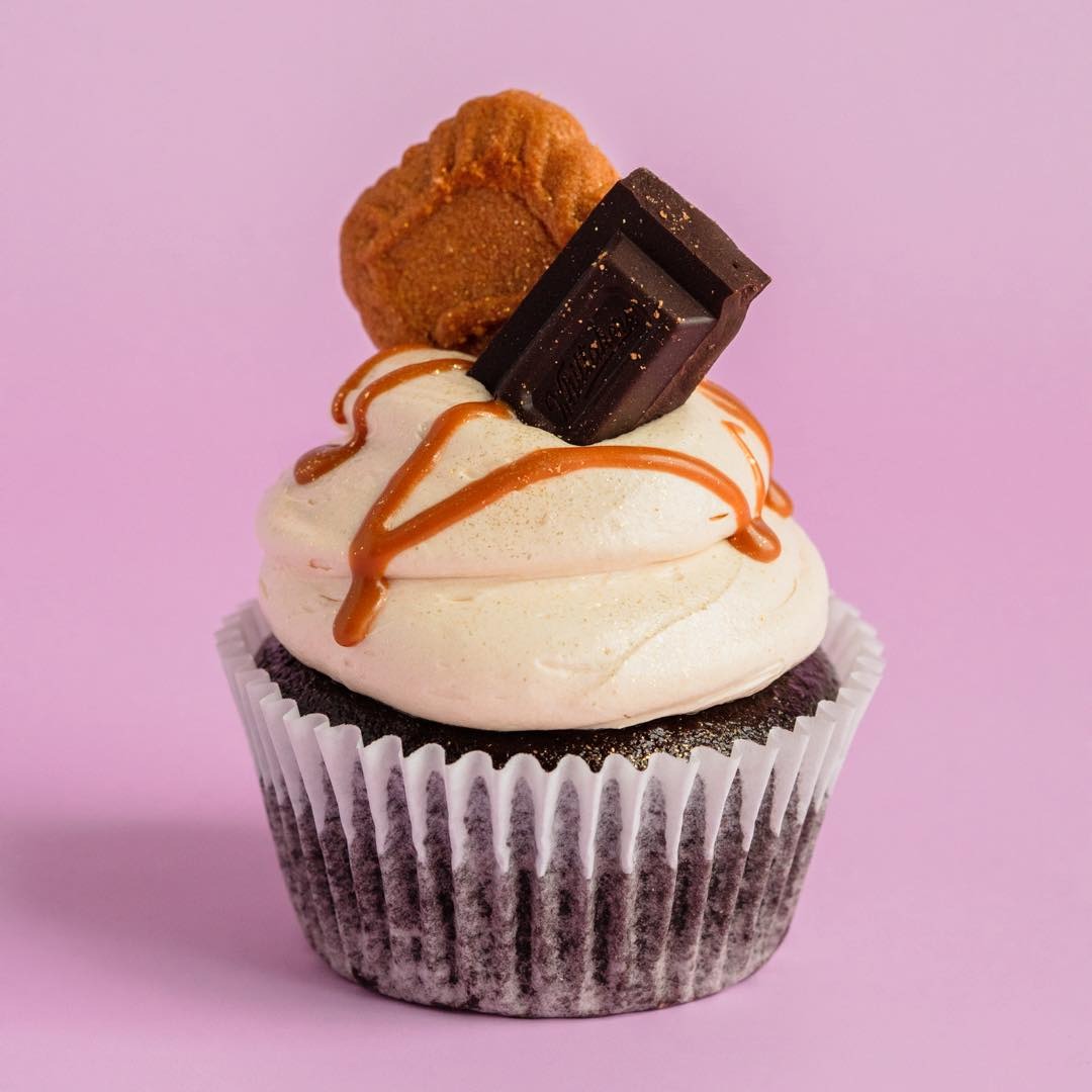 Bluebell’s cupcake of the month is a Biscoff affair, and a persuasive one at that. A vegan chocolate base comes filled with Biscoff spread, topped with a cream cheese icing that leans heavily into that distinctive caramelised spice, and finished with a biscuit crunch and a shard of dark chocolate. Plant-based, yes. Restrained, absolutely not.