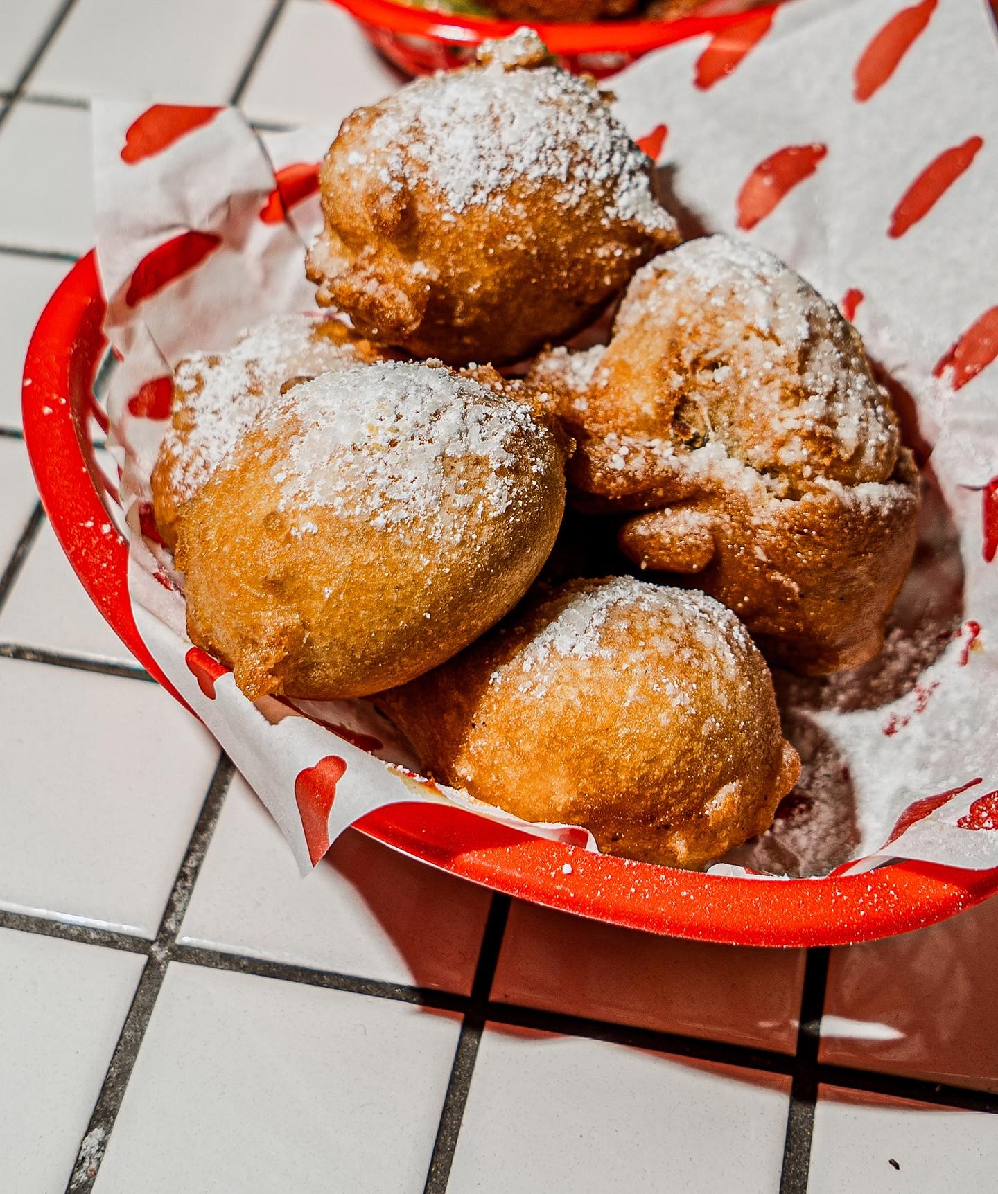 The mini doughnuts at Burger Burger deserve more attention than a side-order billing suggests. Warm, soft, dusted in cinnamon sugar, and served alongside salted caramel sauce and whipped cream for dipping, they’re the kind of sweet afterthought that quietly becomes the highlight of the meal.